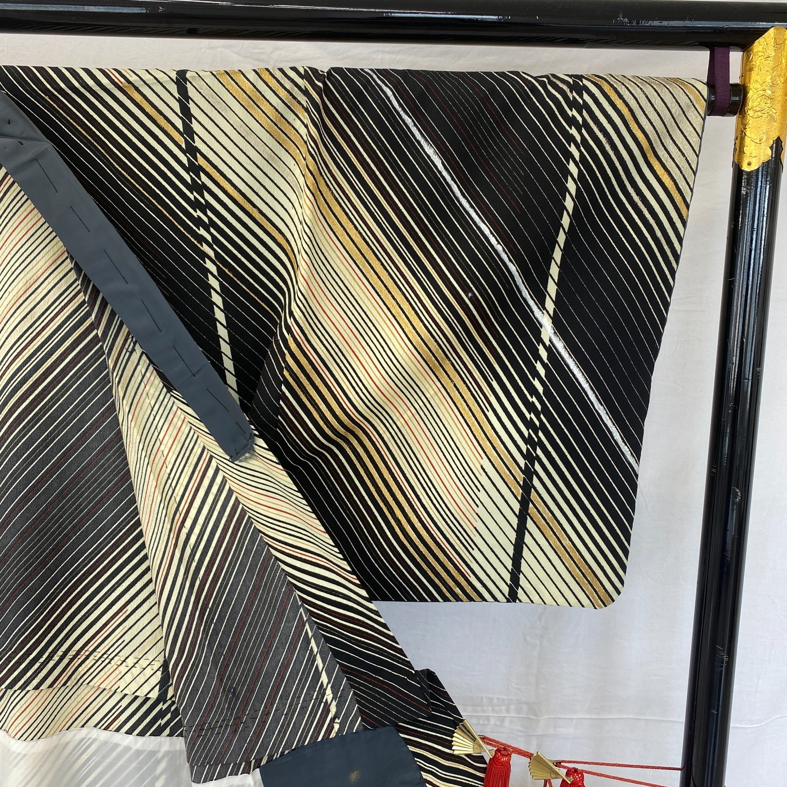 Japanese Vintage Kimono Silk Black Stripes Traditional Authentic Length 56in