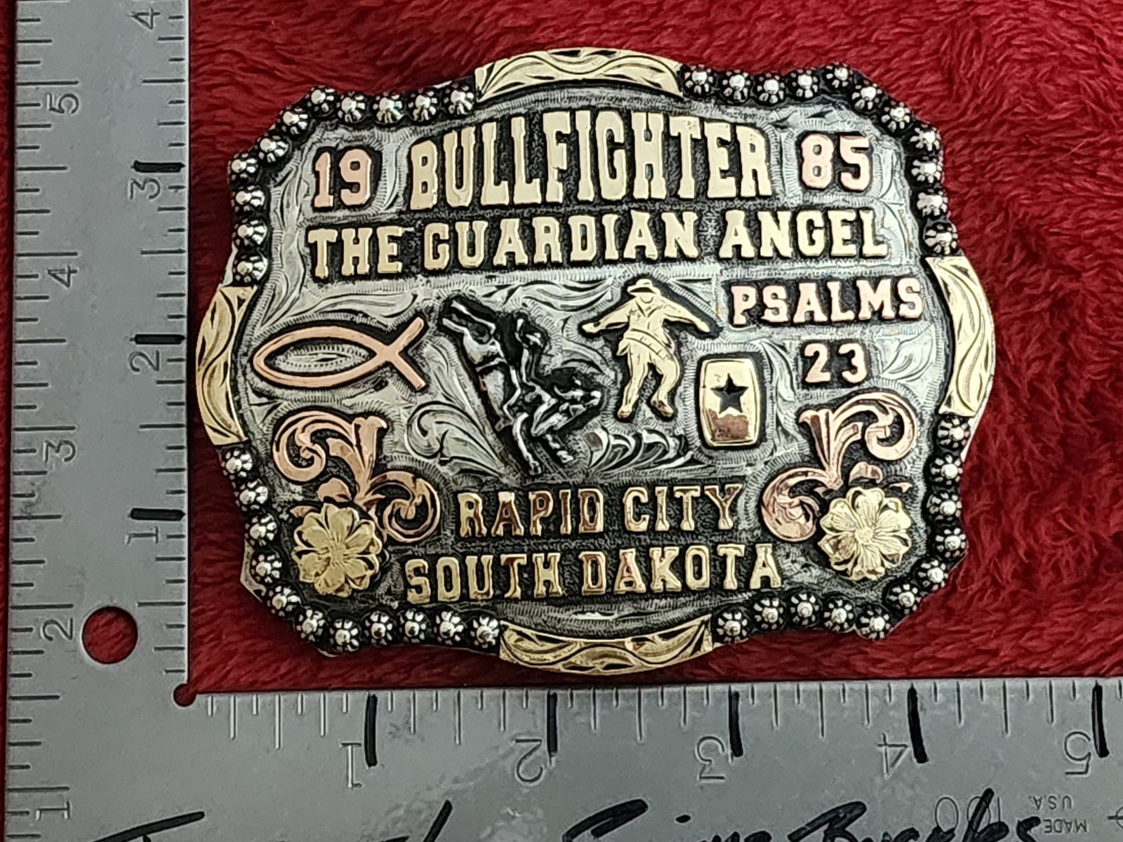 Bullfighting Rodeo Champion Trophy Belt Buckle Rapid City SD 1985 Rare 913