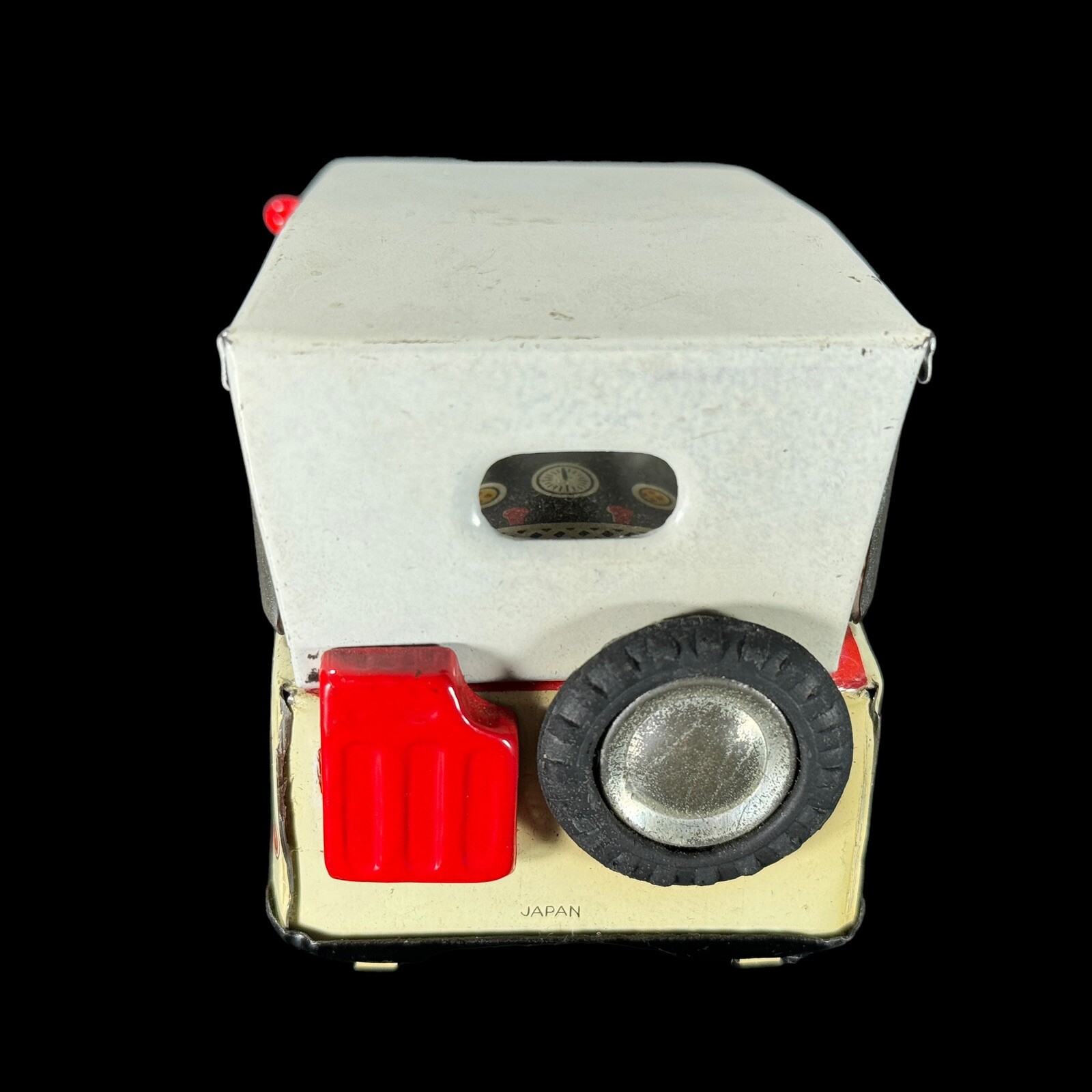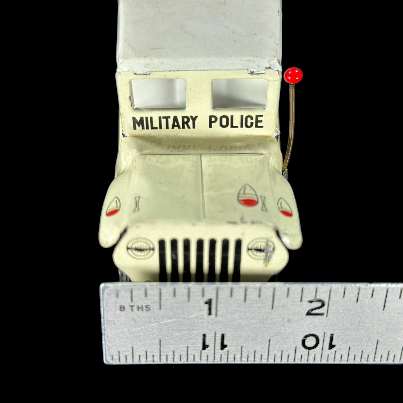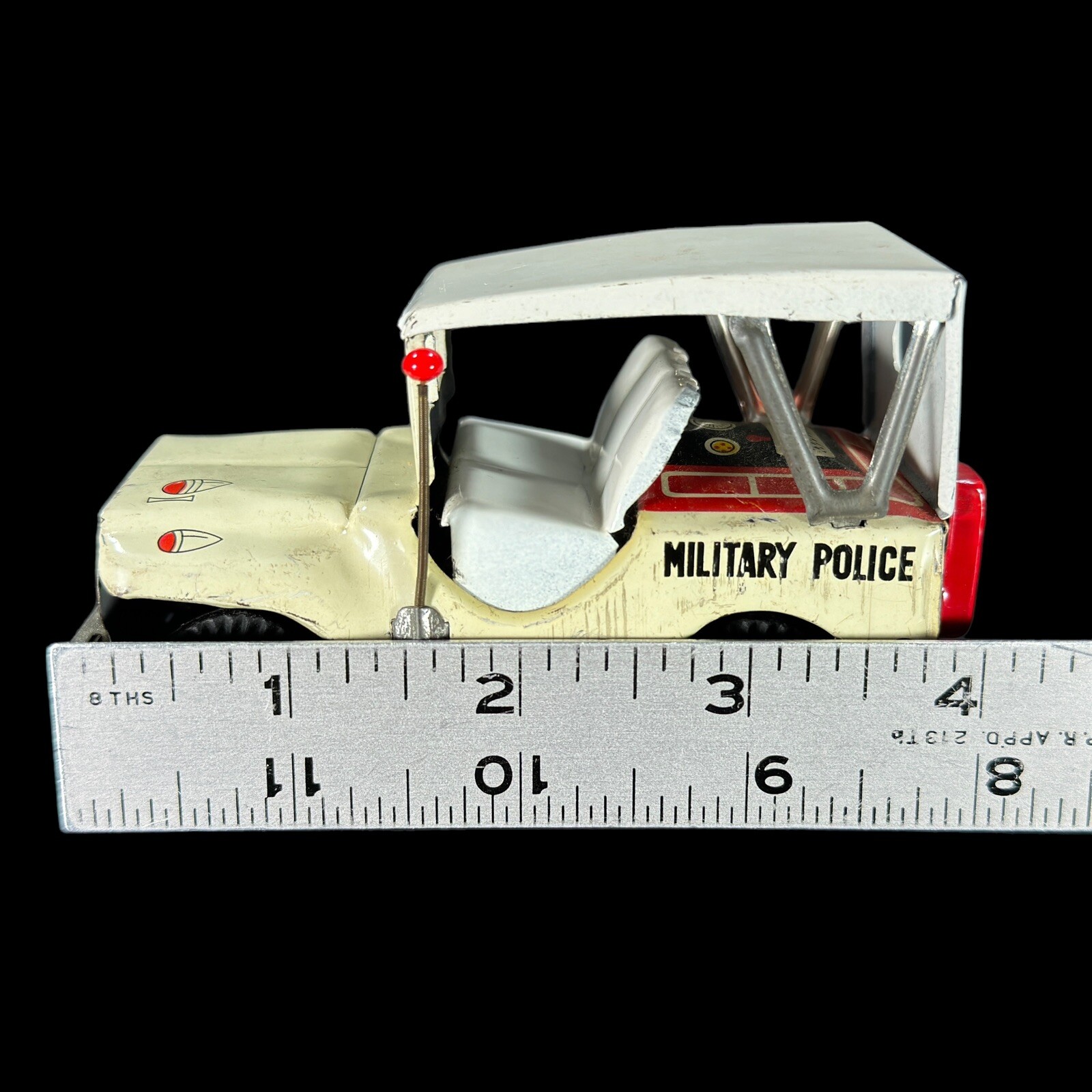 VTG 1960s Japan Tin MILITARY POLICE Friction Jeep White Red WORKS