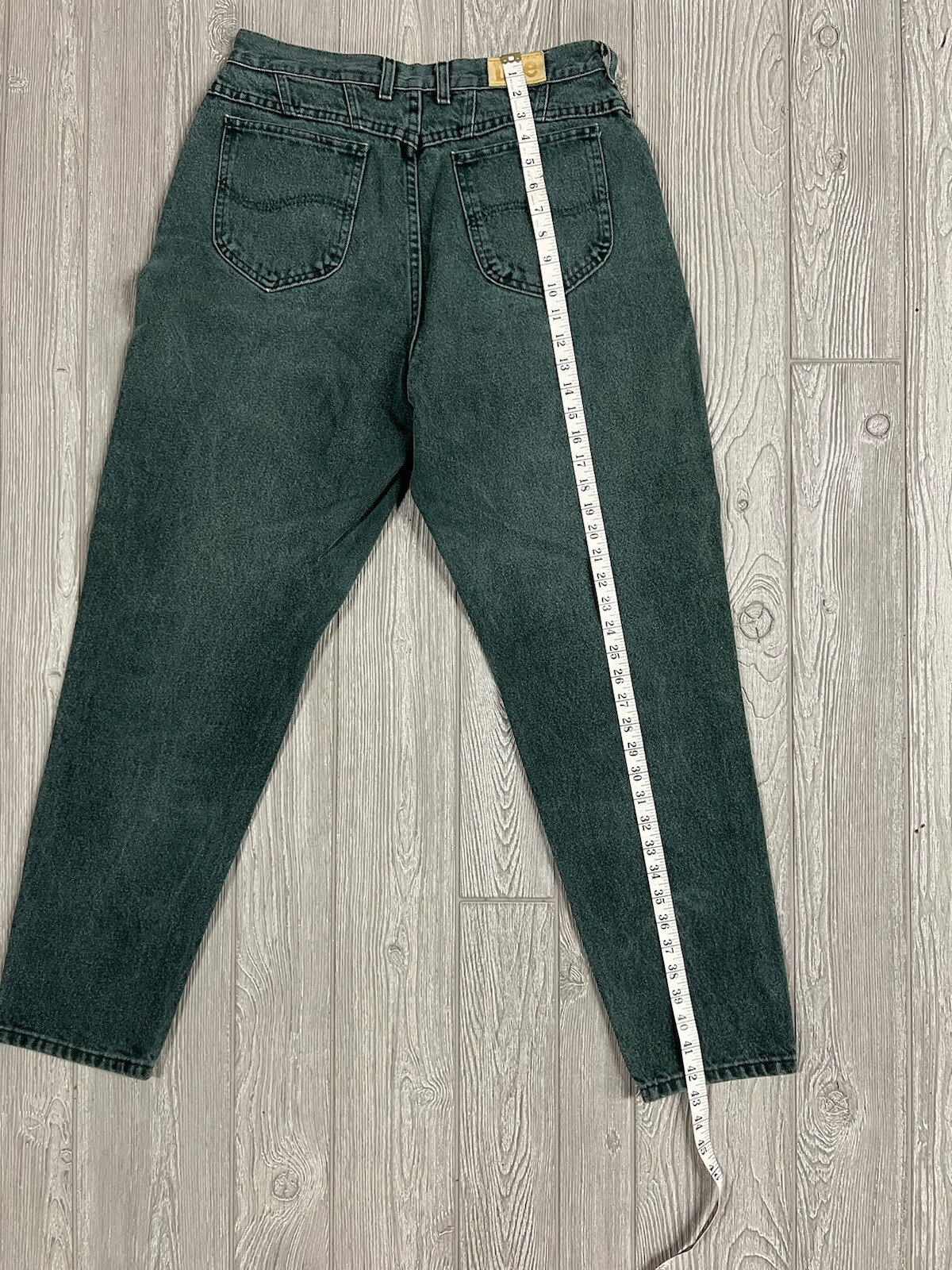 как выглядит Vtg Lee Jeans Women s 16M Green Tapered High Rise Faded Denim Mom Jeans USA фото