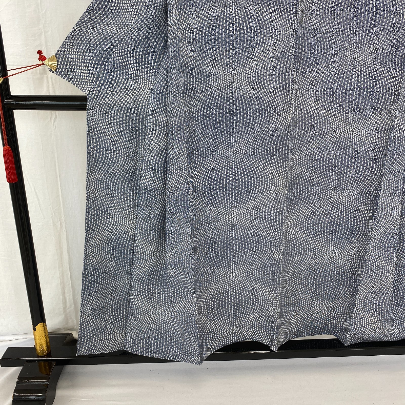 Japanese Vintage Kimono Silk Blue No Lining Komon Traditional Authentic Length59