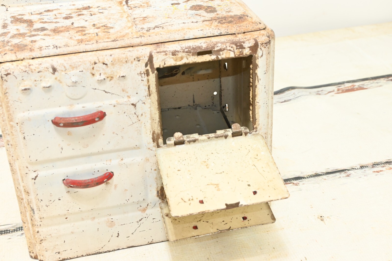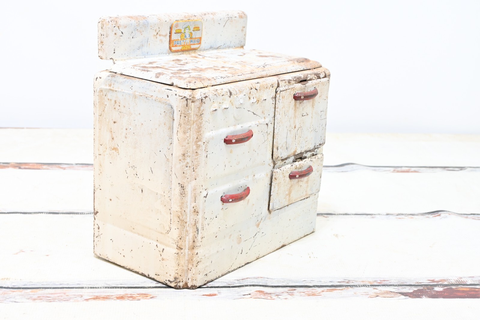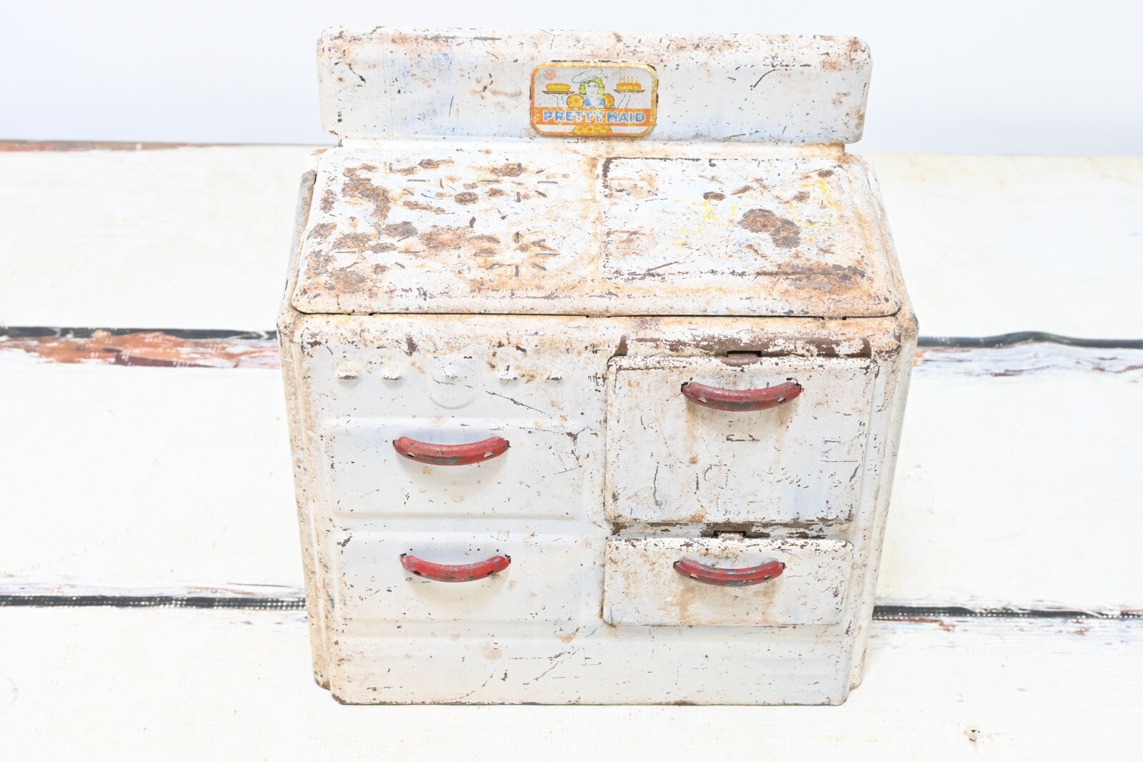 Vintage 1930s Marx Pretty Maid Toy Oven, Metal Enamel Tin Range Kitchen Stove