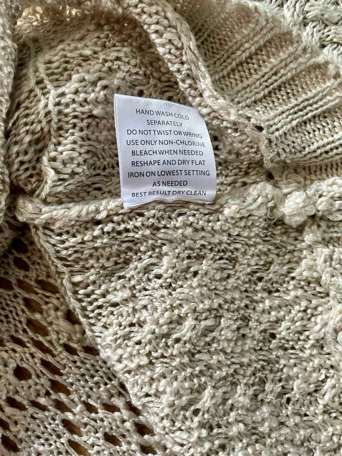 как выглядит Pink Rose Cream Medium Crew Neck Sweater with Intricate Knit Design фото