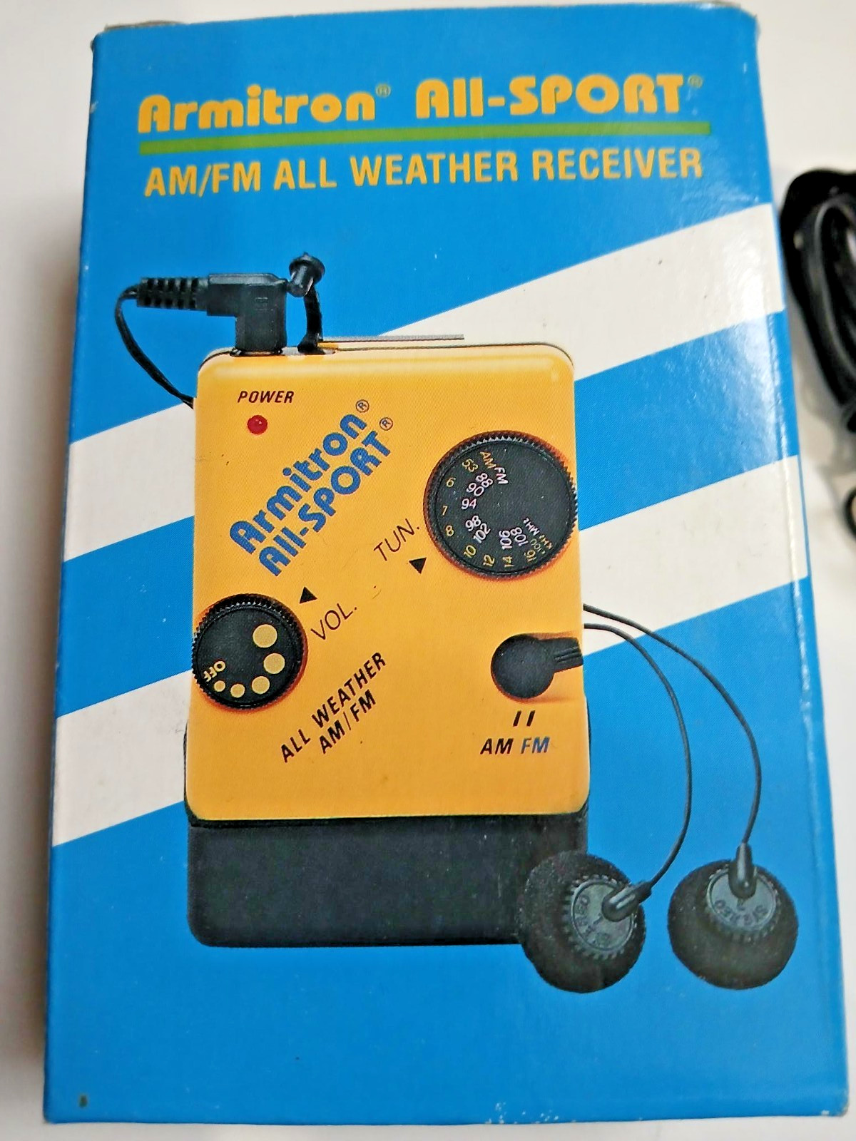 VINTAGE ARMITRON ALL SPORT AM / FM ALL WEATHER RECEIVER WITH EARPHONE