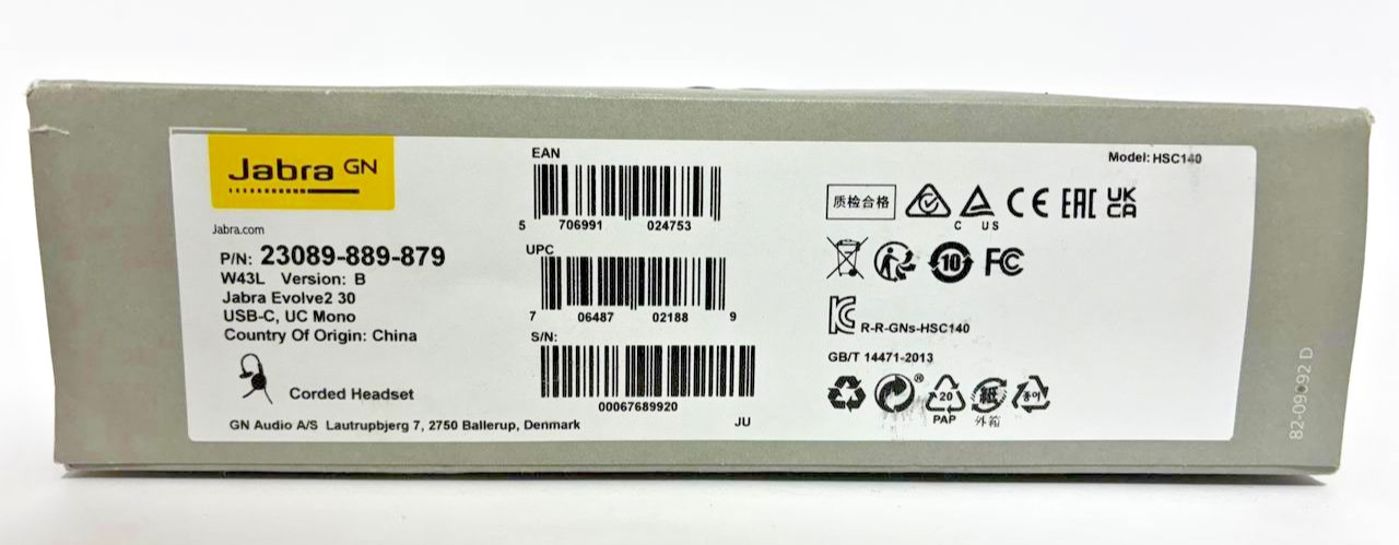 Jabra Evolve 2 30 SE Lightweight Wired Stereo Headphones Black NEW