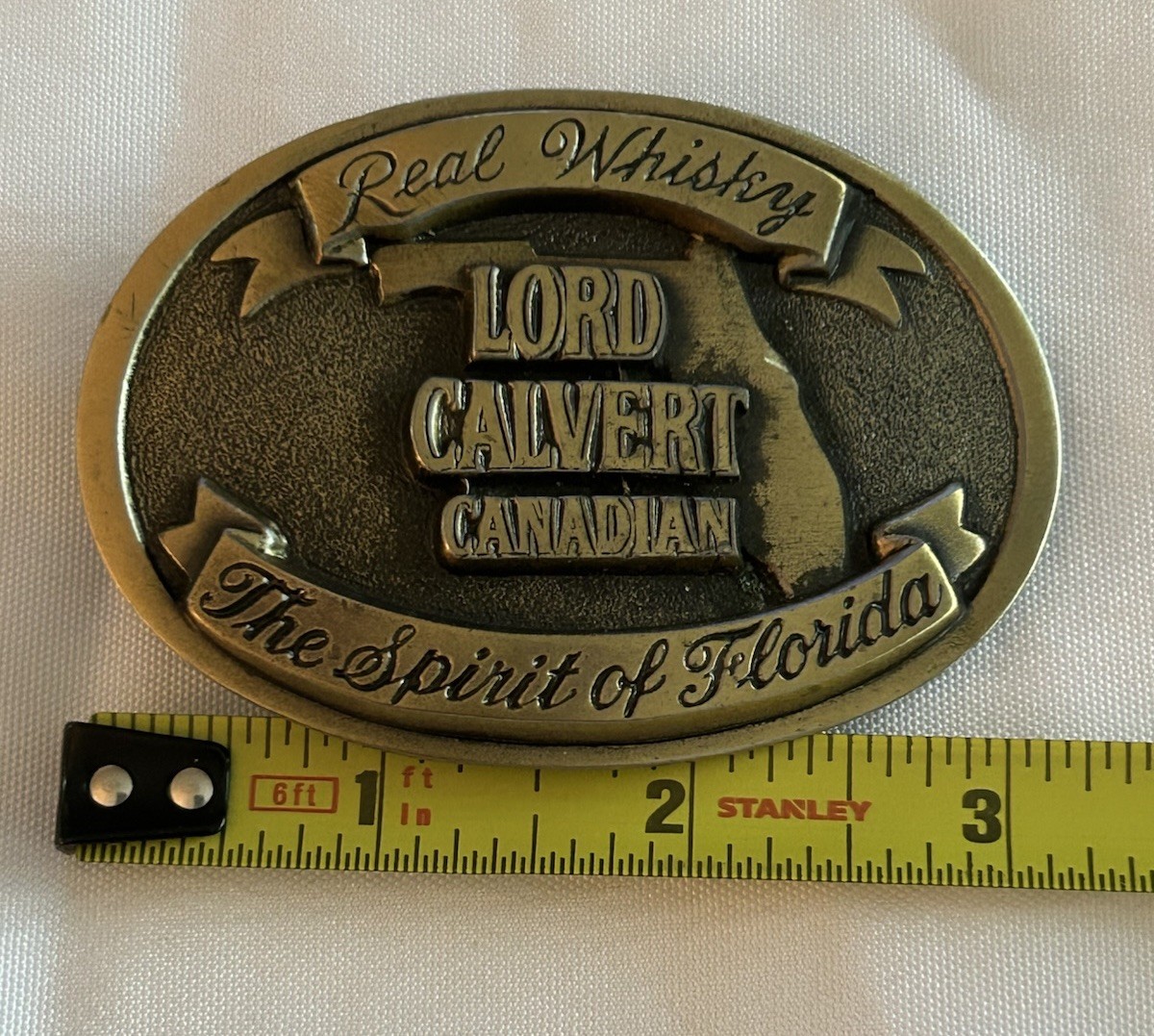 Vintage LORD CALVERT Canadian Whisky Belt Buckle Spirit Of FL Whiskey 4 Real Men