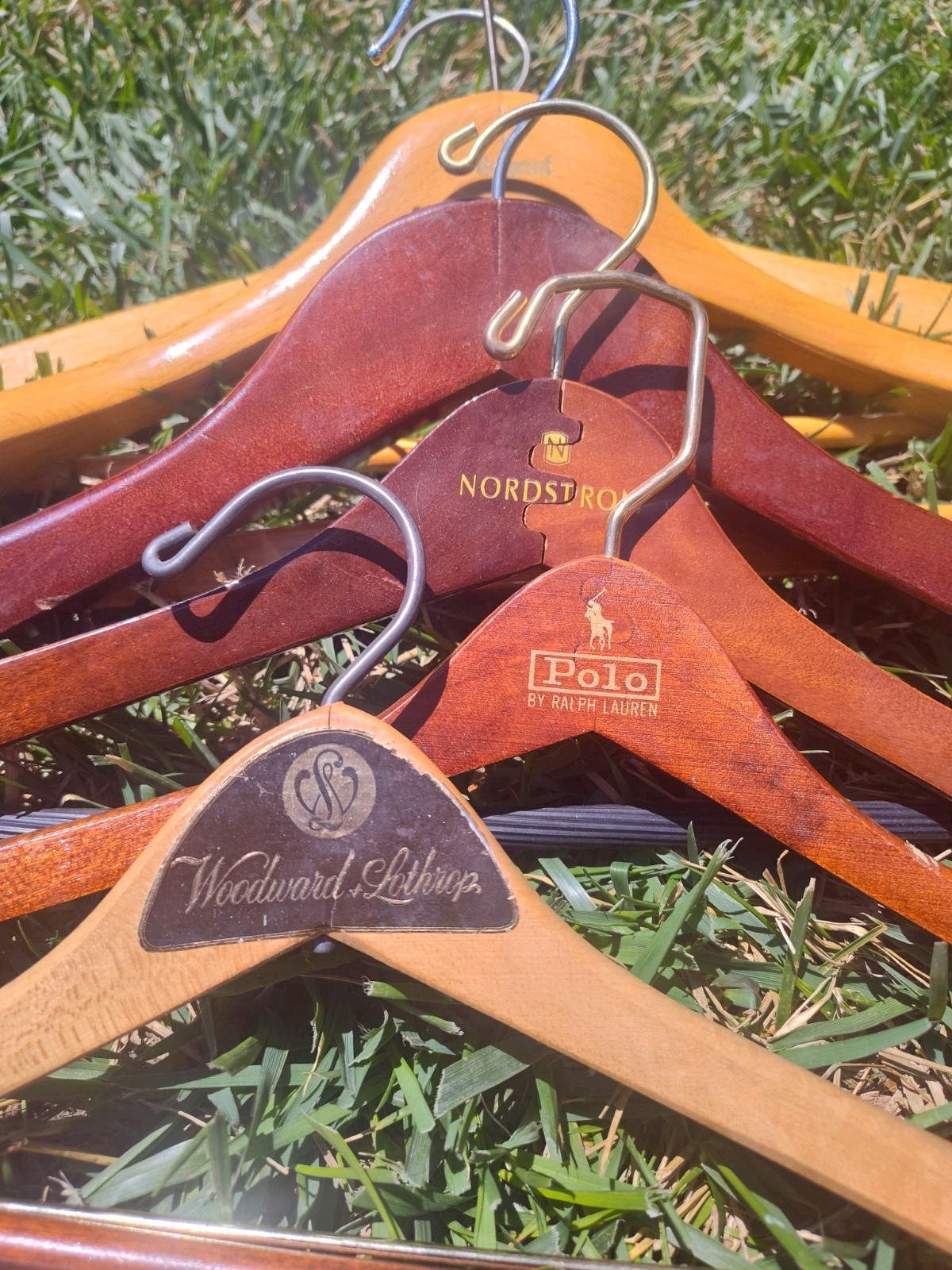 6 Vtg Wooden Suit Hangers Polo Nordstrom Woodward Lothrop Lot