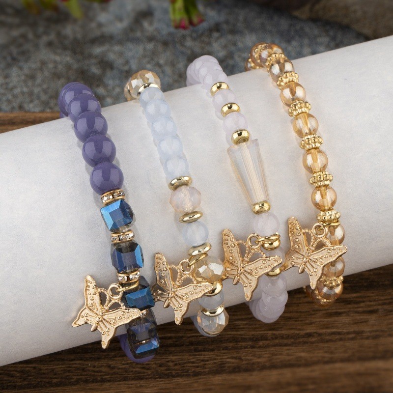 как выглядит 28pcs/7Sets Boho Stackable Beaded Bracelet Butterfly Charms Handmade Jewelry Set фото