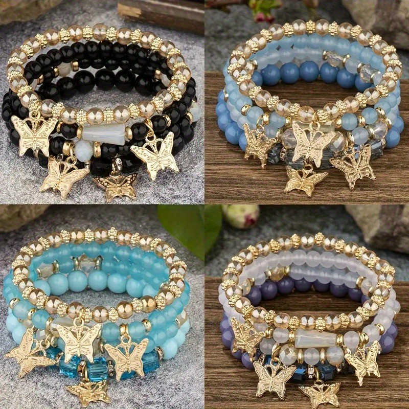 28pcs/7Sets Boho Stackable Beaded Bracelet Butterfly Charms Handmade Jewelry Set