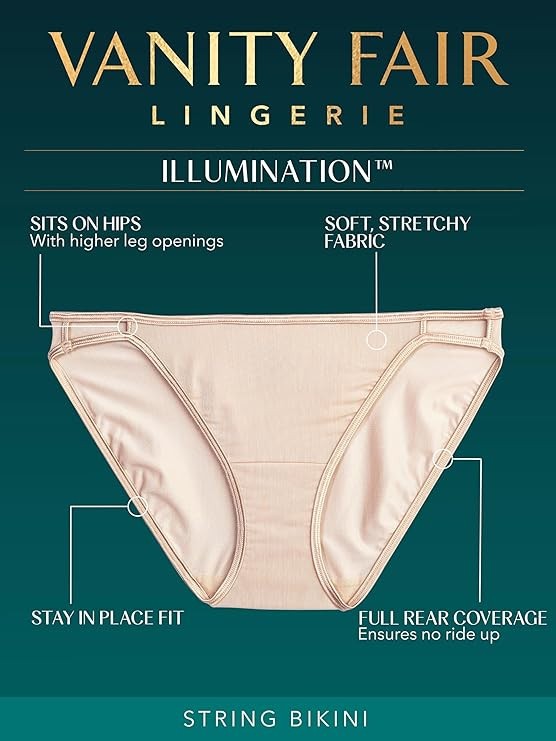 как выглядит 4 pc VANITY FAIR String Bikini ILLUMINATION 18108 Panty BEIGE Sz 5 6 7 8 фото