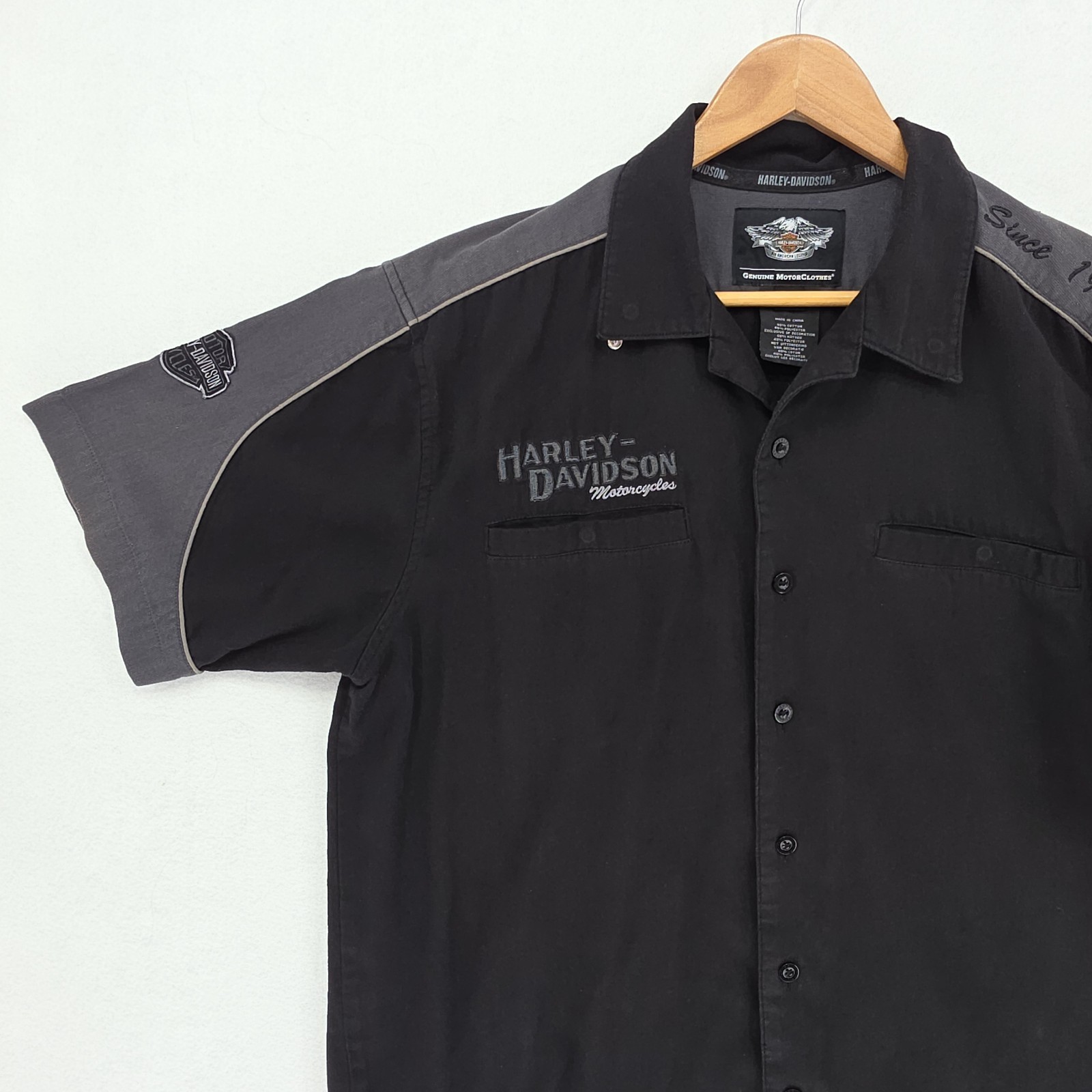 • Men's Harley Davidson Shirt L Biker Garage Mechanic Shirt Embroidered Black