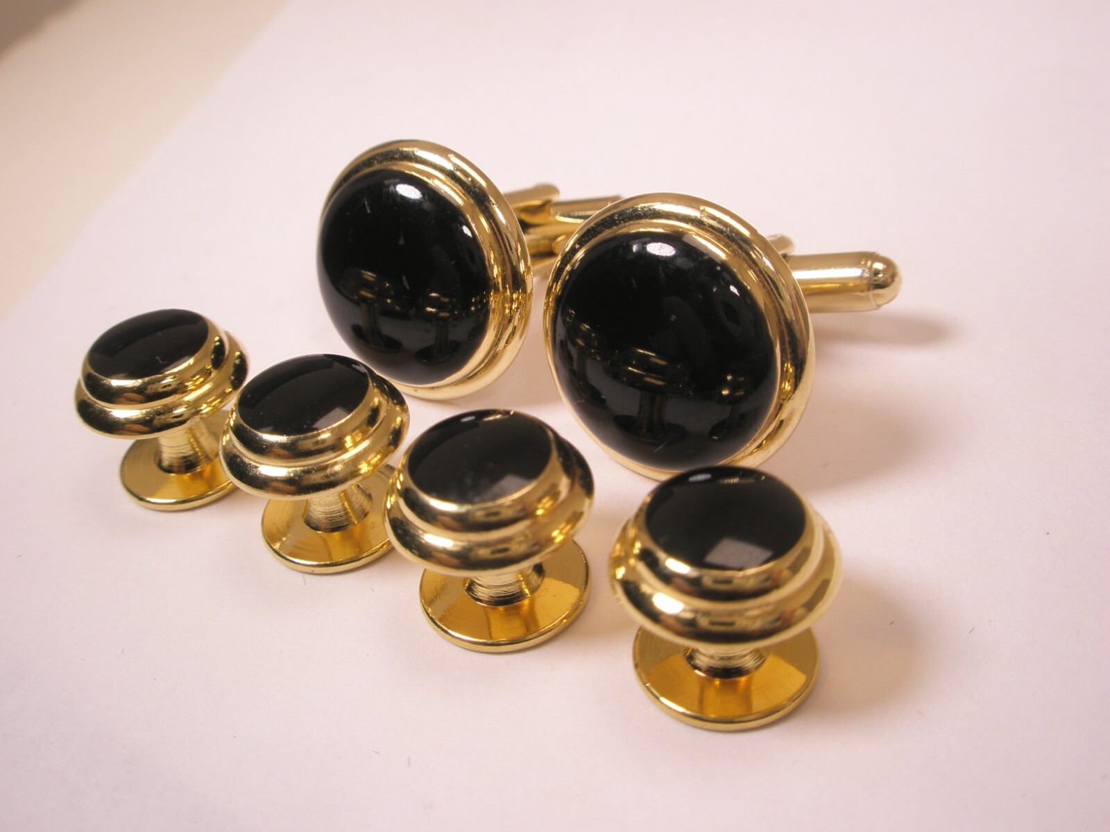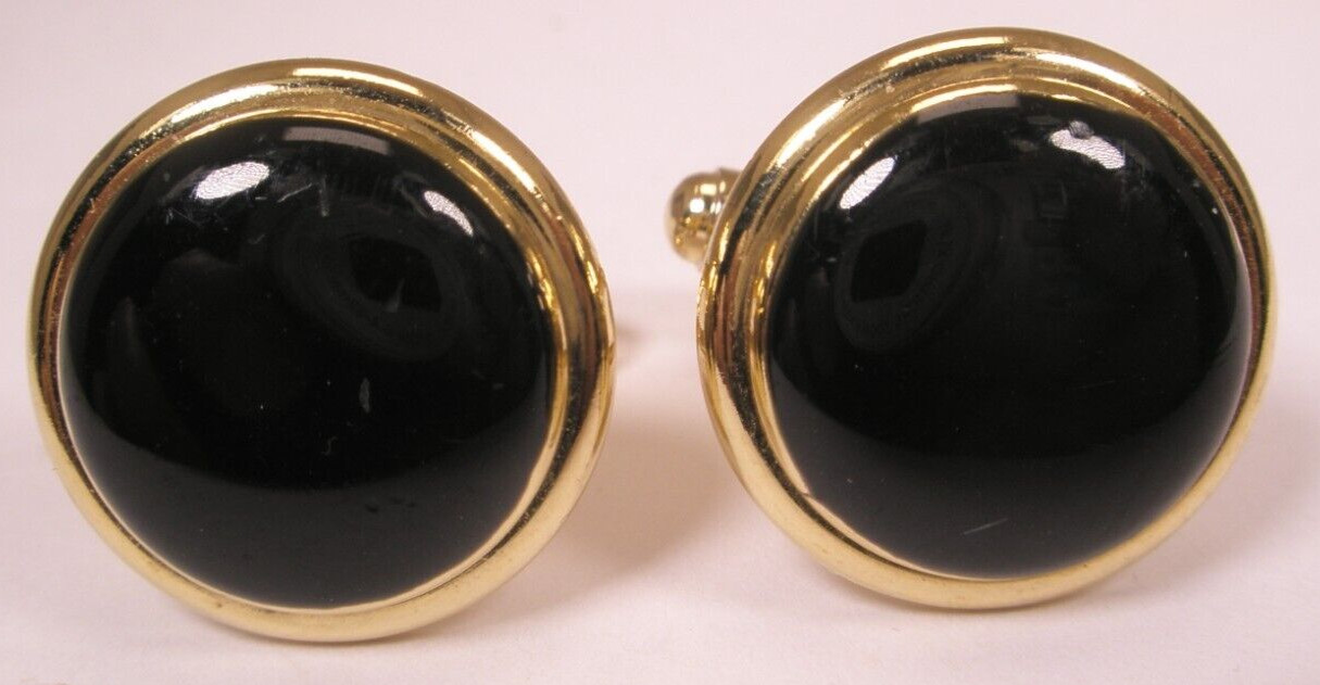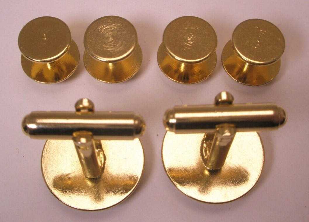 Black Gold Tone Round Vintage Cuff Links Tux Prom Shirt Studs set p41