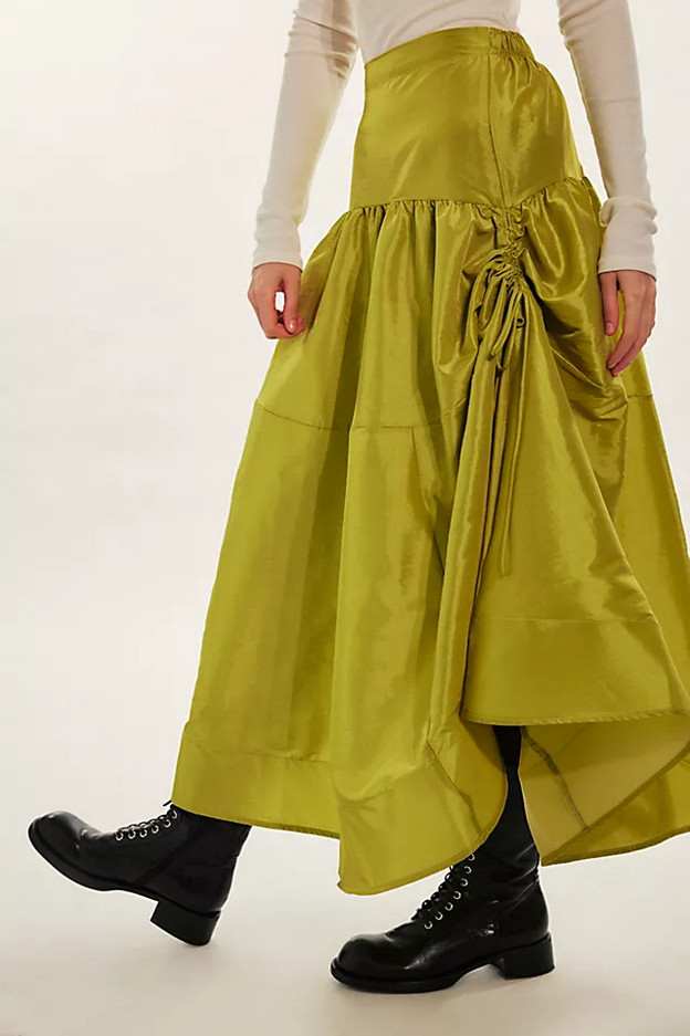 как выглядит NEW FREE PEOPLE LENTIL SPROUT GREEN EMERY DROP WAIST MIDI SKIRT SZ S SMALL фото