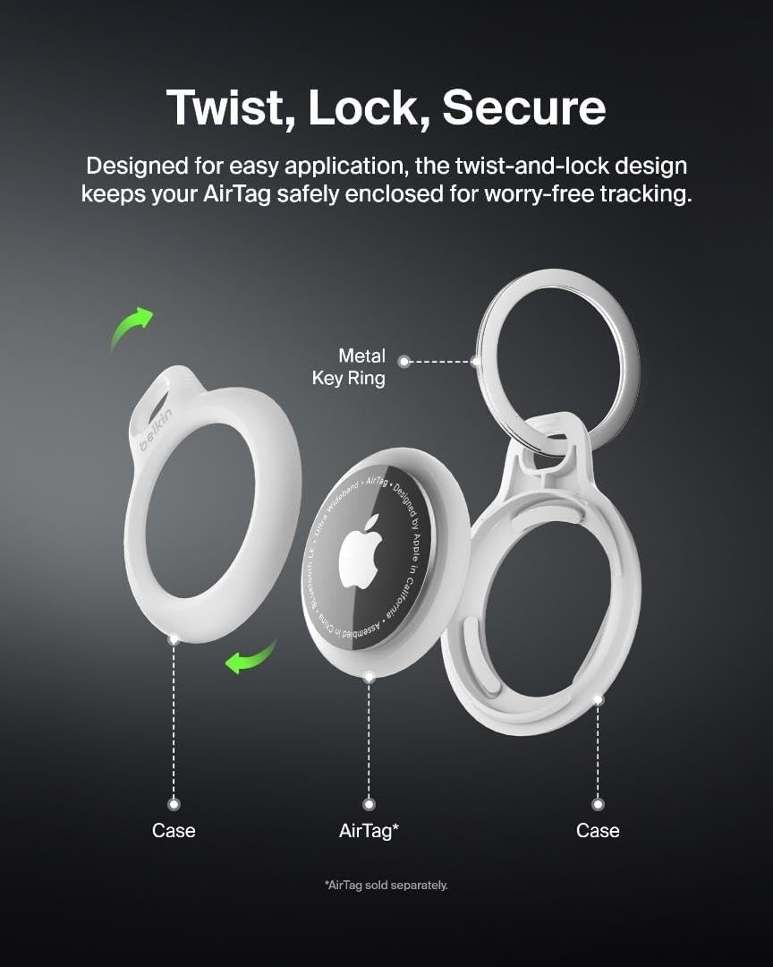 Belkin Secure Holder with Key Ring Keychain for Apple AirTag White