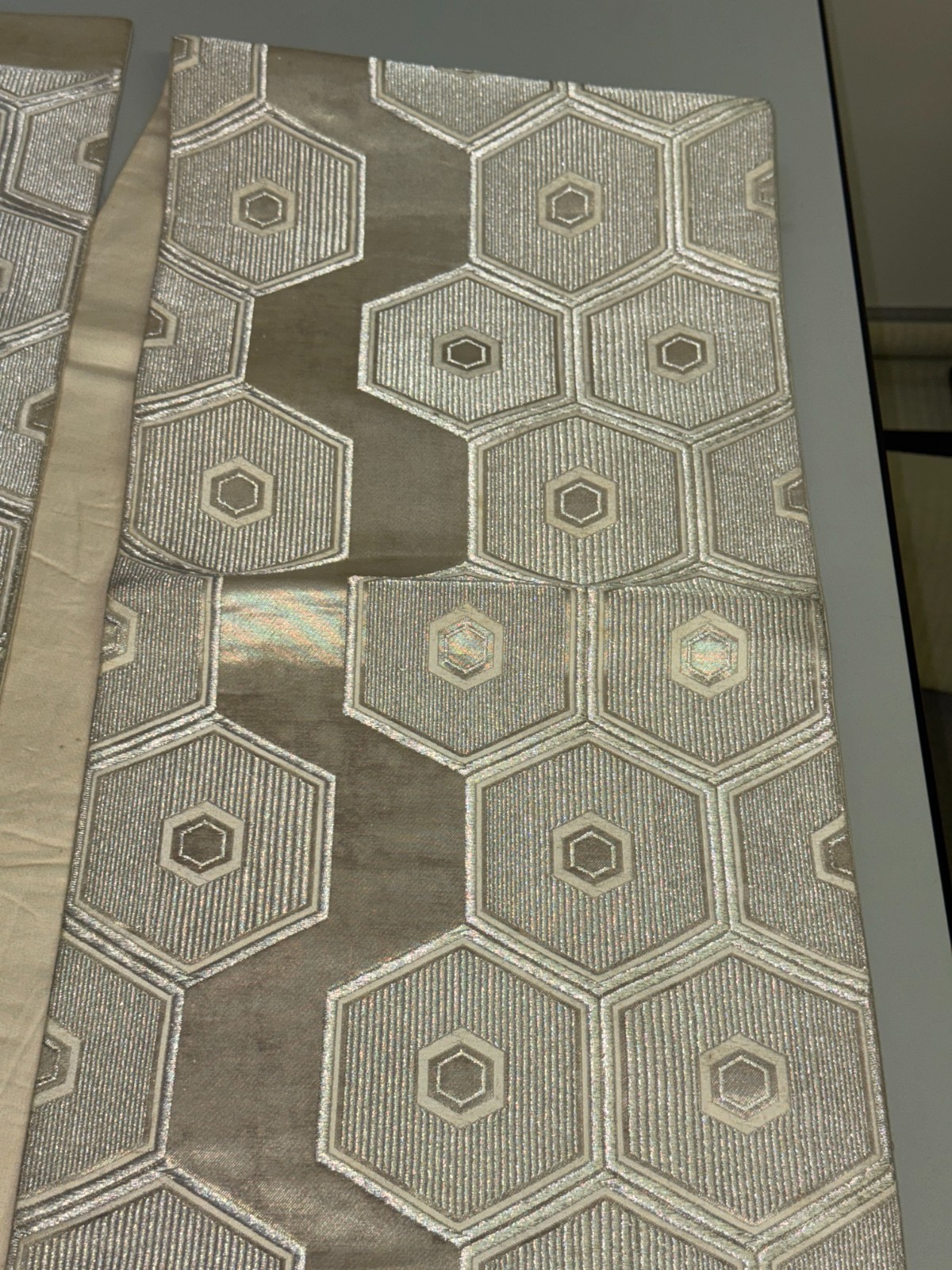 как выглядит Japanese Vintage Kimono Fukuro Obi Silk Silver Traditional Authentic 177x11in фото