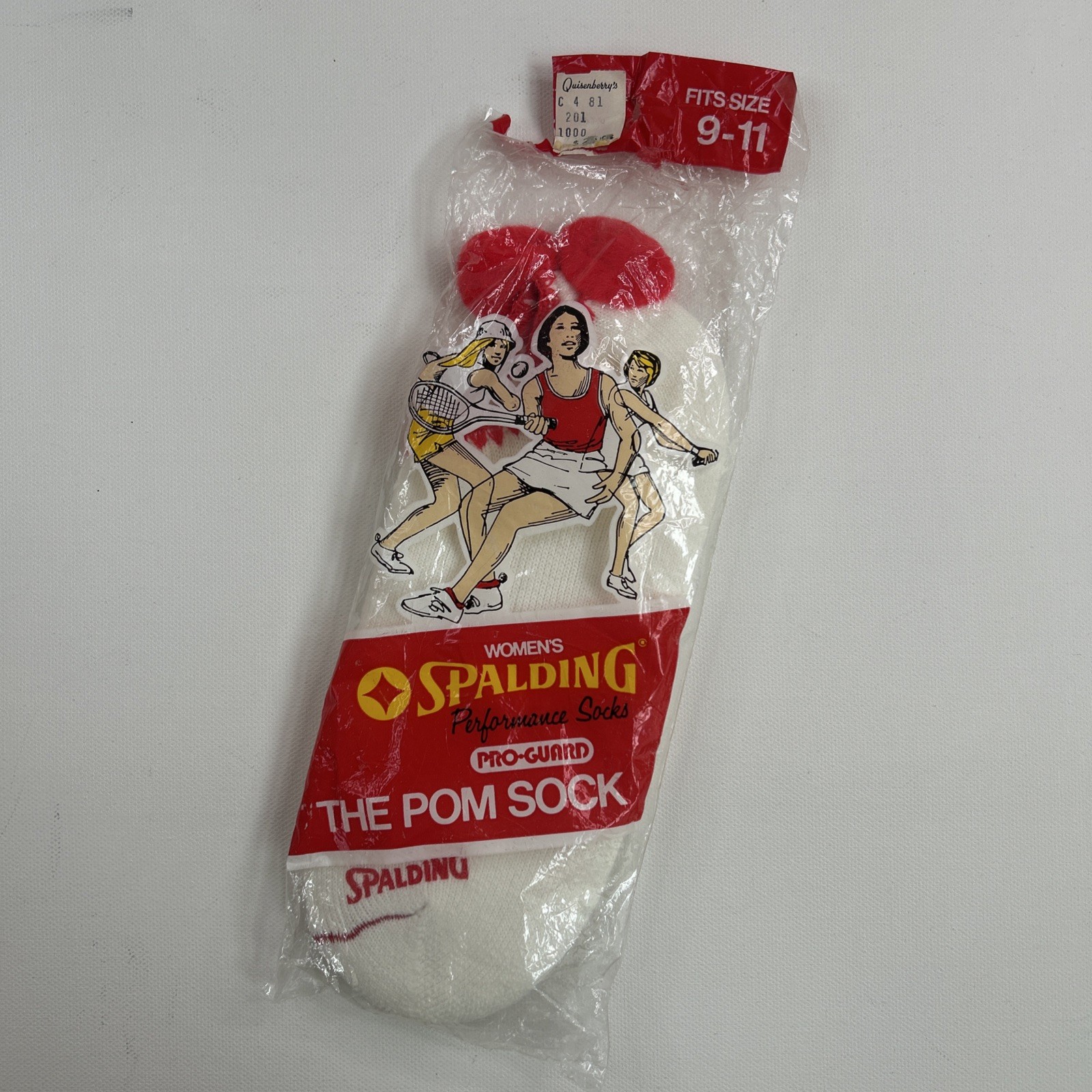 Women's VTG Socks Spalding Pom Ankle Acrylic Blend Size 9-11 NWT 80's Red USA