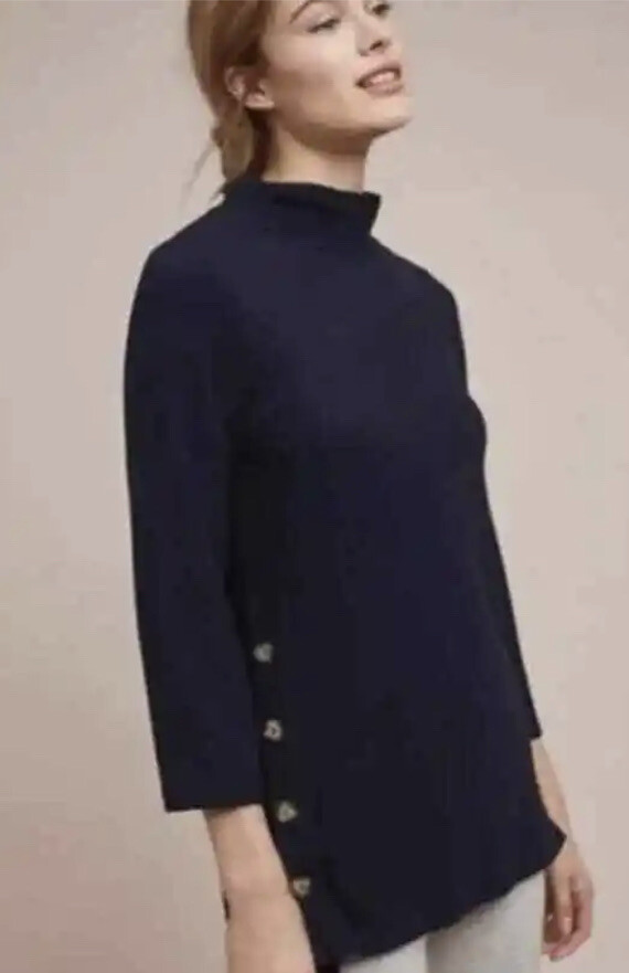 Anthropologie Saturday Sunday Mock Neck Ribbed Navy Blue Sweater Top Womens XS