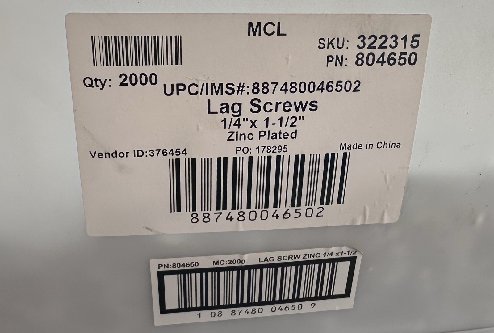 • 322315 Everbilt 1/4 x 1-1/2 Lag Zinc-Plated Screws Hex Head