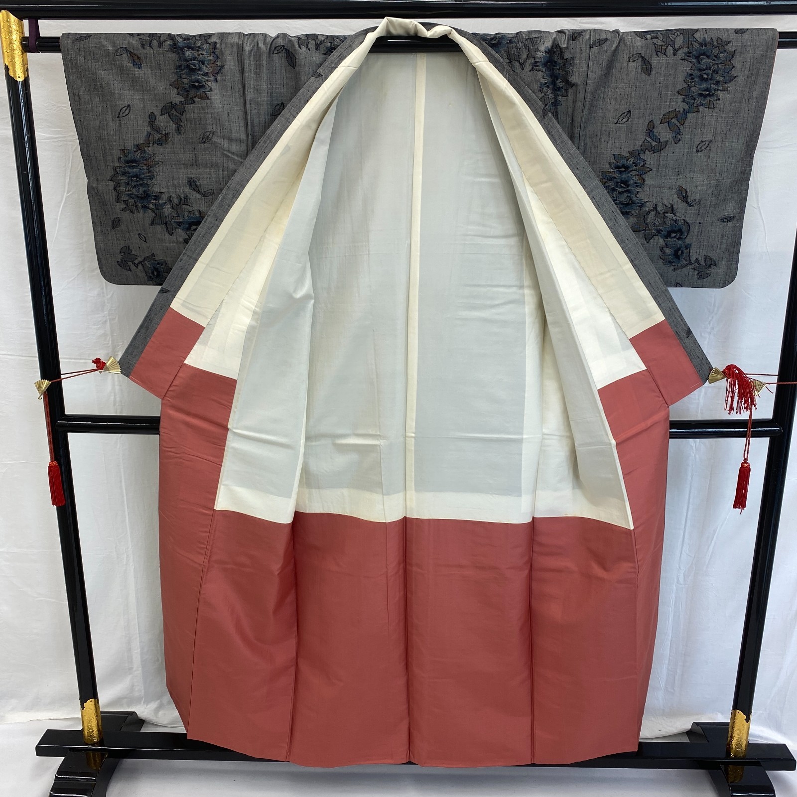 Japanese Vintage Kimono Silk Gray Yuki Tumugi Traditional Authentic Length 60in