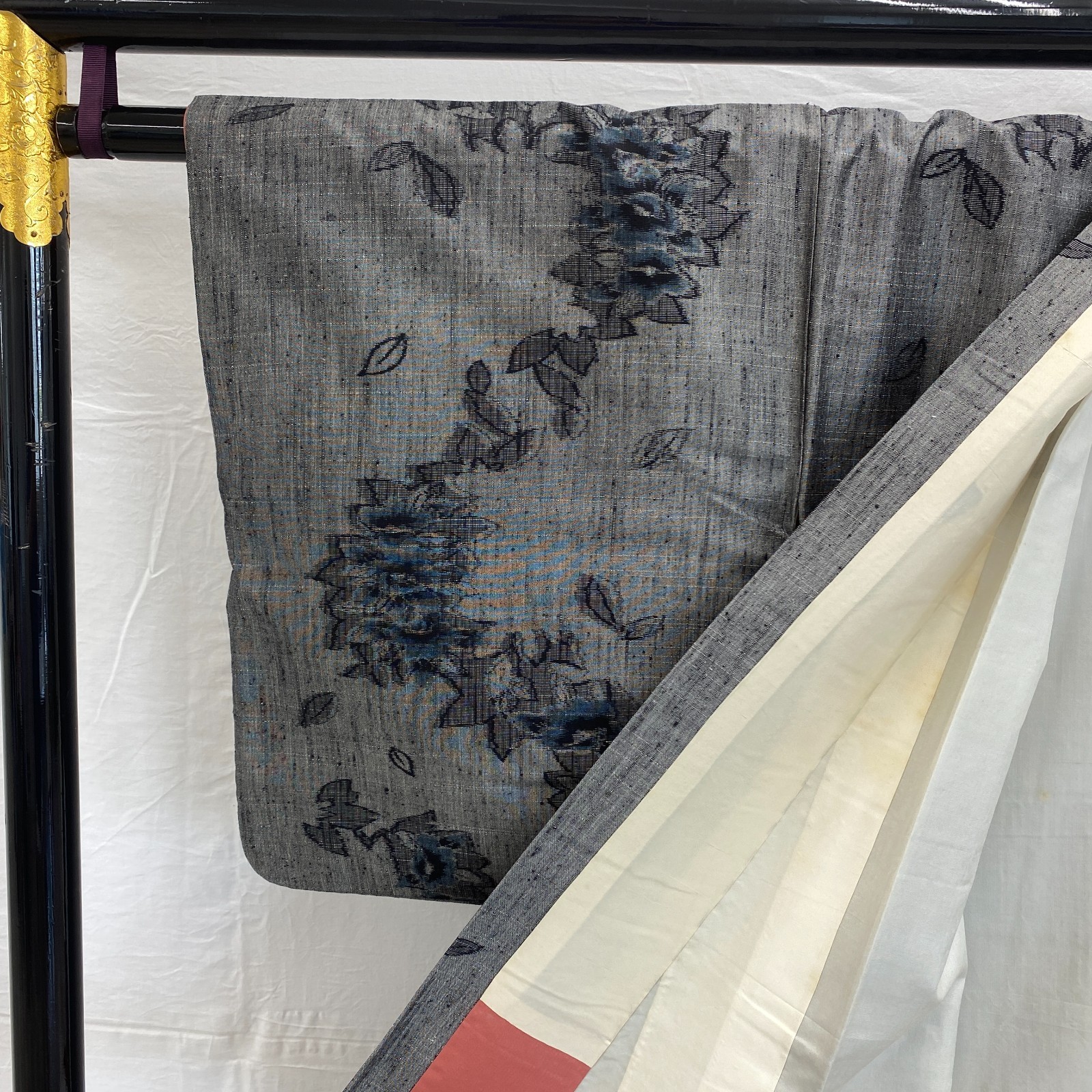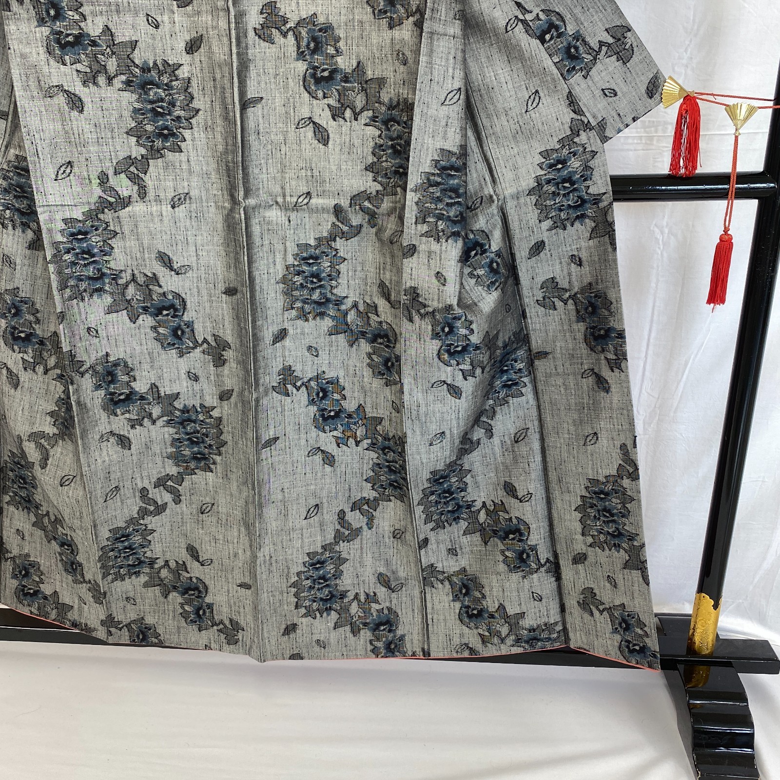 как выглядит Japanese Vintage Kimono Silk Gray Yuki Tumugi Traditional Authentic Length 60in фото