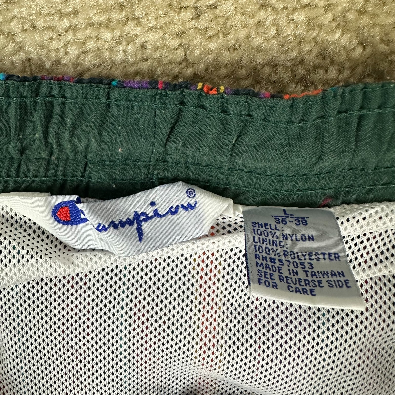 как выглядит Vtg 90s champion Mens swim trunks XL retro Wild Geometric Shorts Purple 4" фото