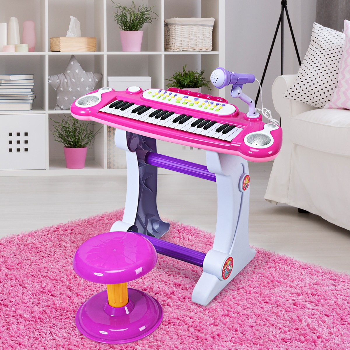 37 Key Electronic Keyboard Kids Toy Piano MP3 Input w/ Microphone Stool Musical
