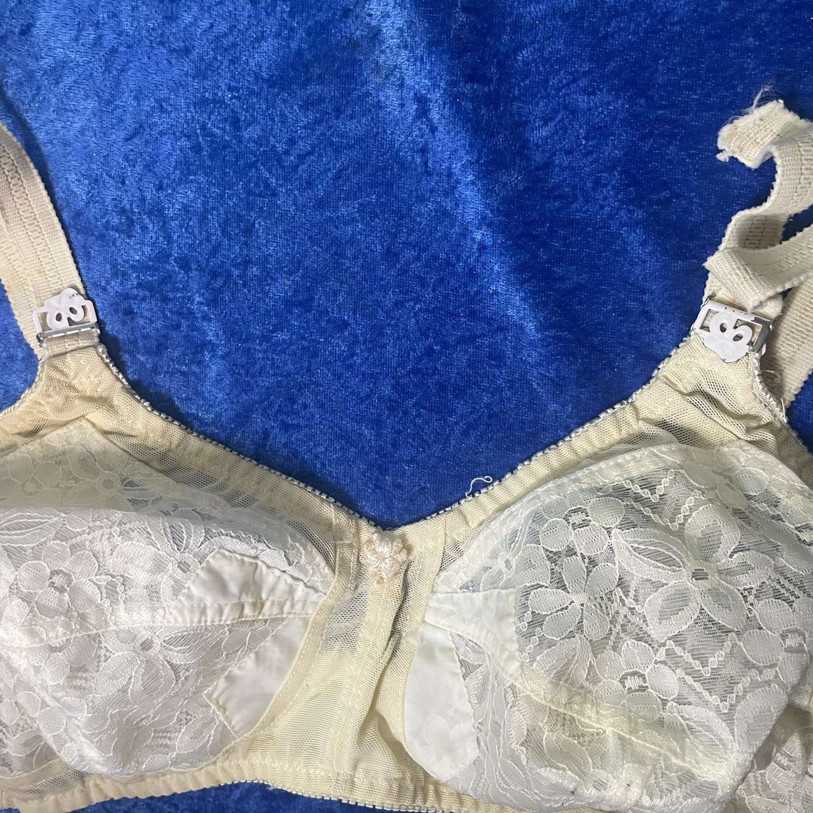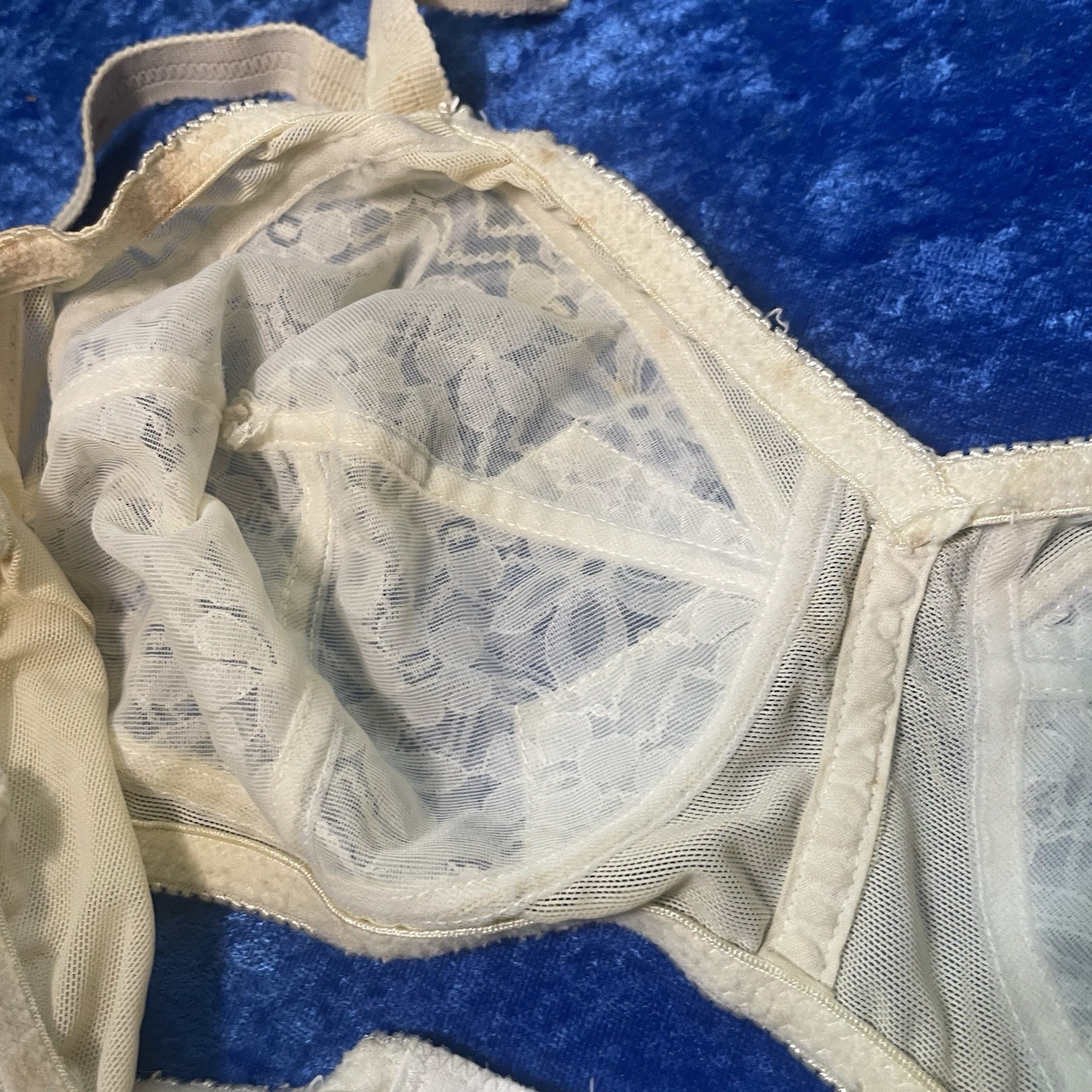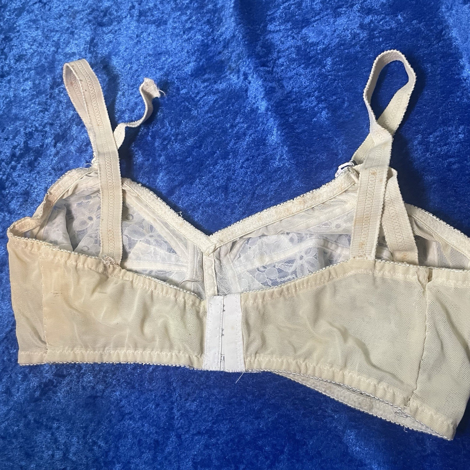 Vintage Kiki Bullet Bra 38c Beige Lace Pinup Lingerie Stains See Pics As Is