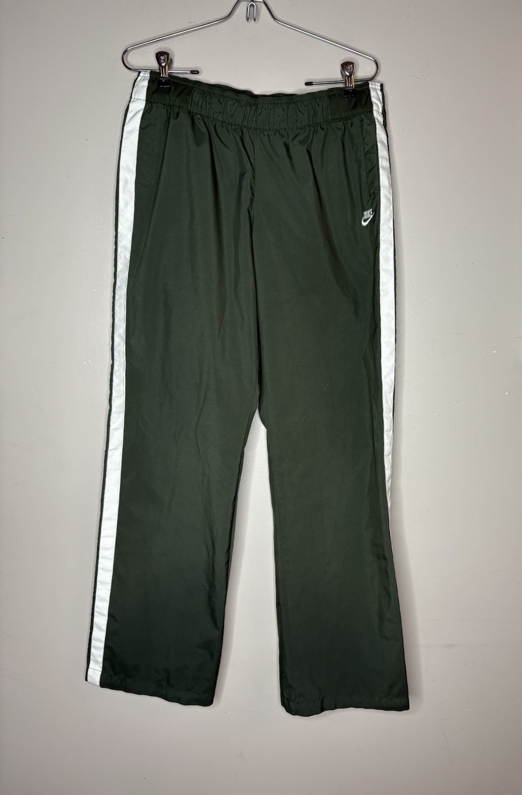 Vtg Nike Windbreaker Sz L 12-14 Track Pants Green White Stripe Loose Y2K Swoosh