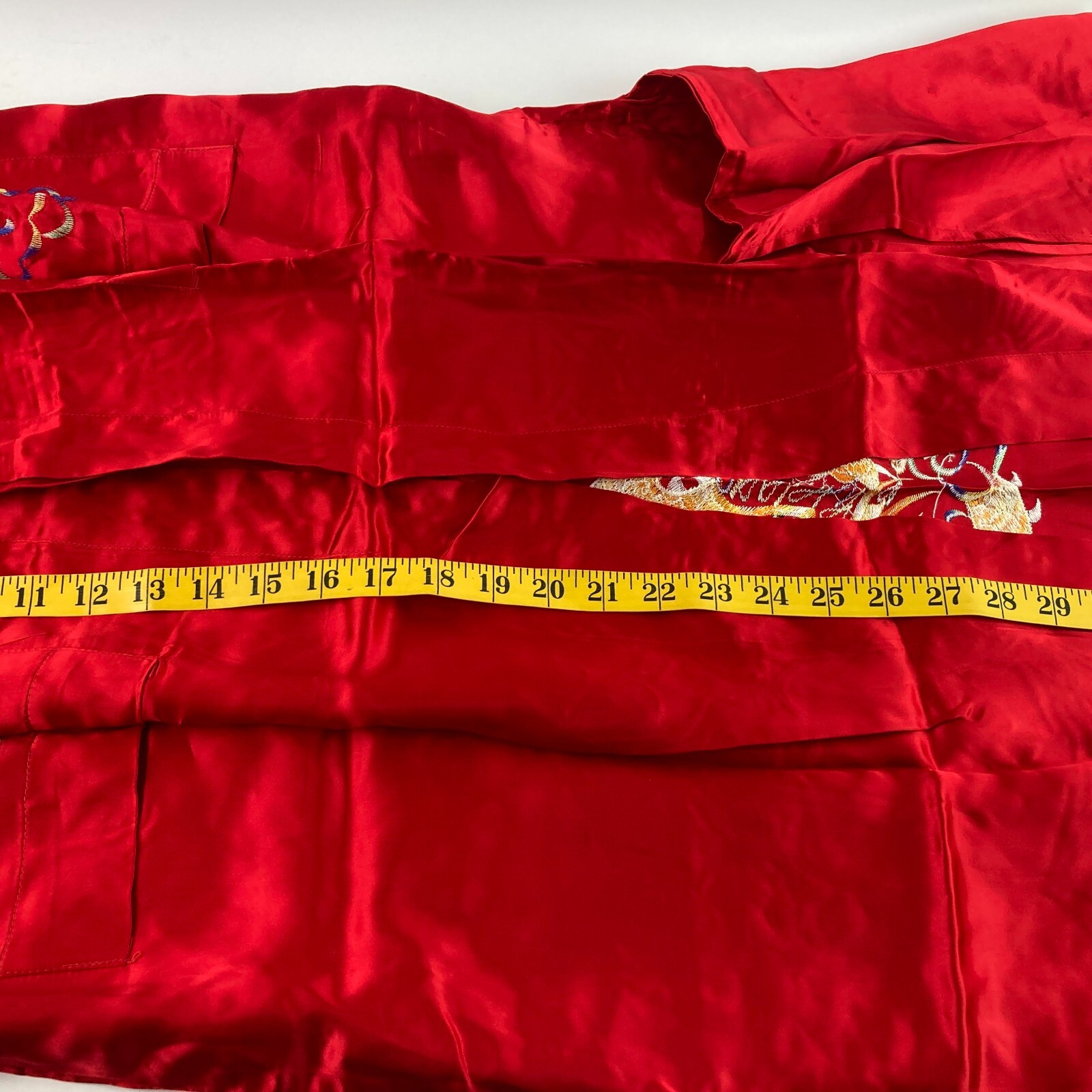 как выглядит Vintage Red Silky Satin Kimono Robe Embroidered Dragon Size Medium Dual Short фото