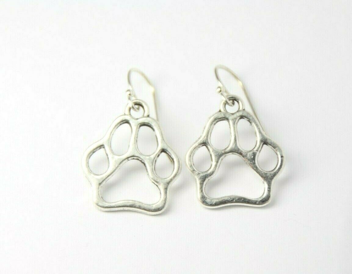 Dog Paw Print Charm Earrings 925 sterling silver hooks pewter charms Puppy