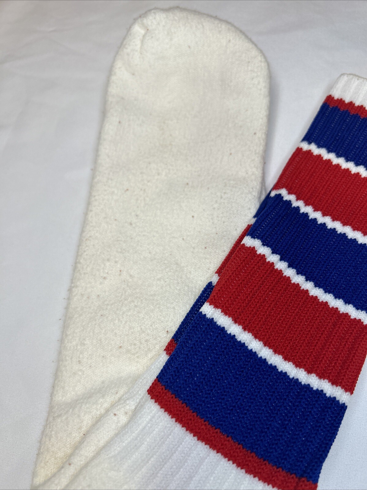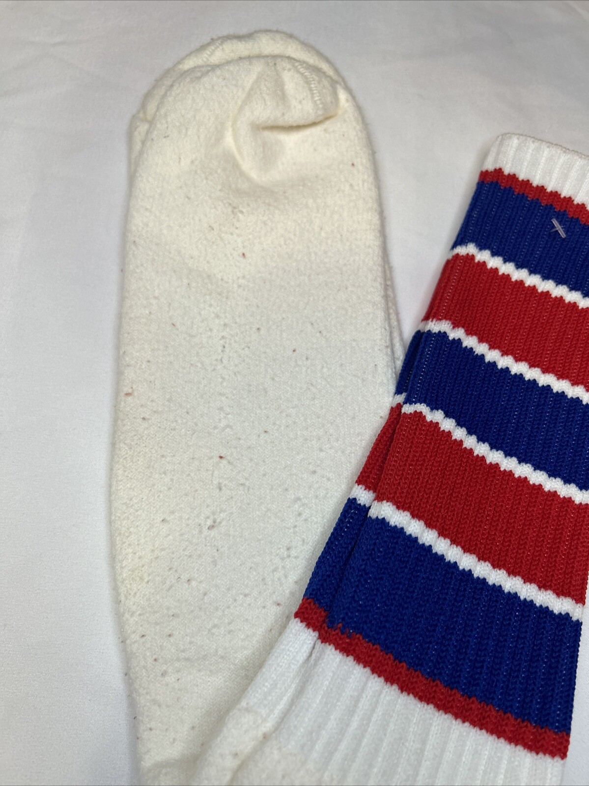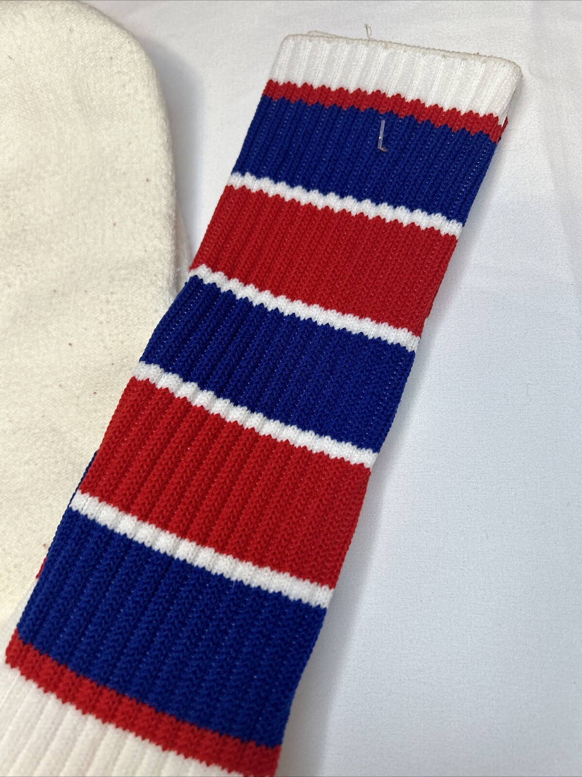 VTG Tube Socks 80's 21 Blue Red Striped 10-13 Basketball Cotton Blend 90s