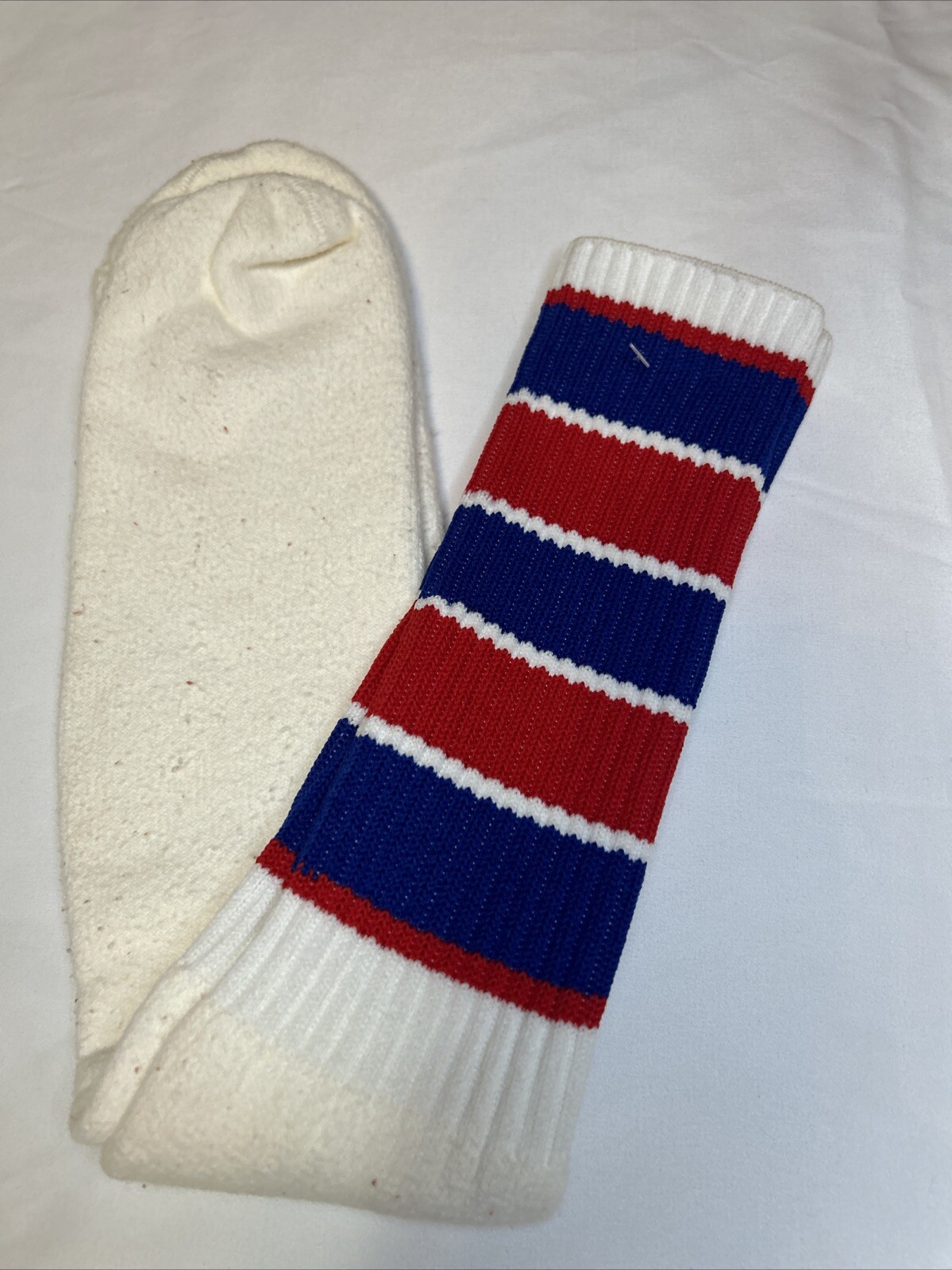 как выглядит VTG Tube Socks 80s 21" Blue Red Striped 10-13 Basketball Cotton Blend 90s фото