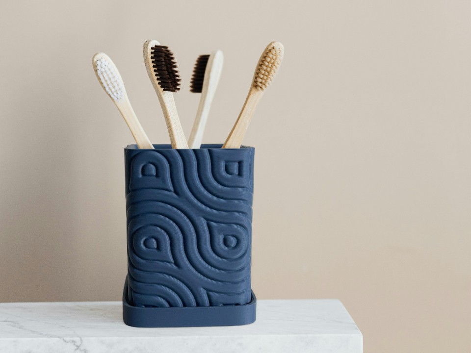 Botanical Blue Toothbrush Holder Decorative Bathroom Accessory