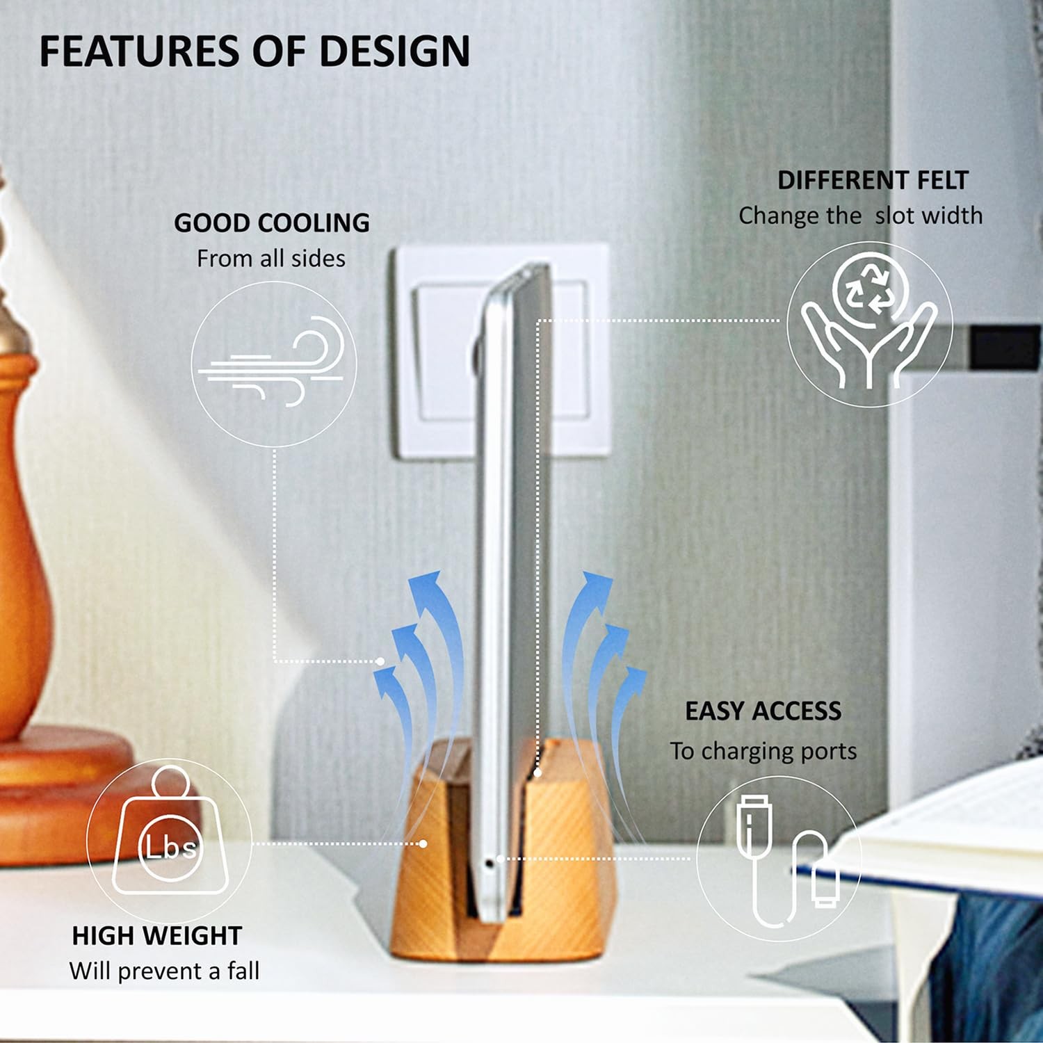 как выглядит Wood Vertical Laptop Stand for Desk - Compatible With MacBook Pro Air Surface... фото