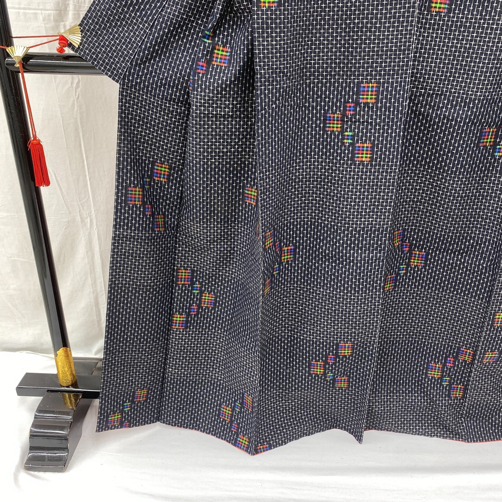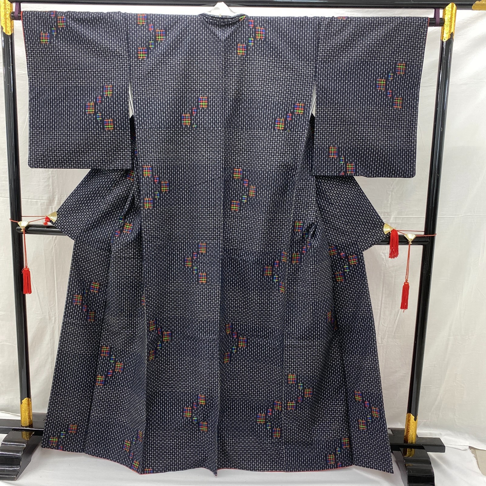 как выглядит Japanese Vintage Kimono Silk Black Tsumugi Traditional Authentic Length 64in фото