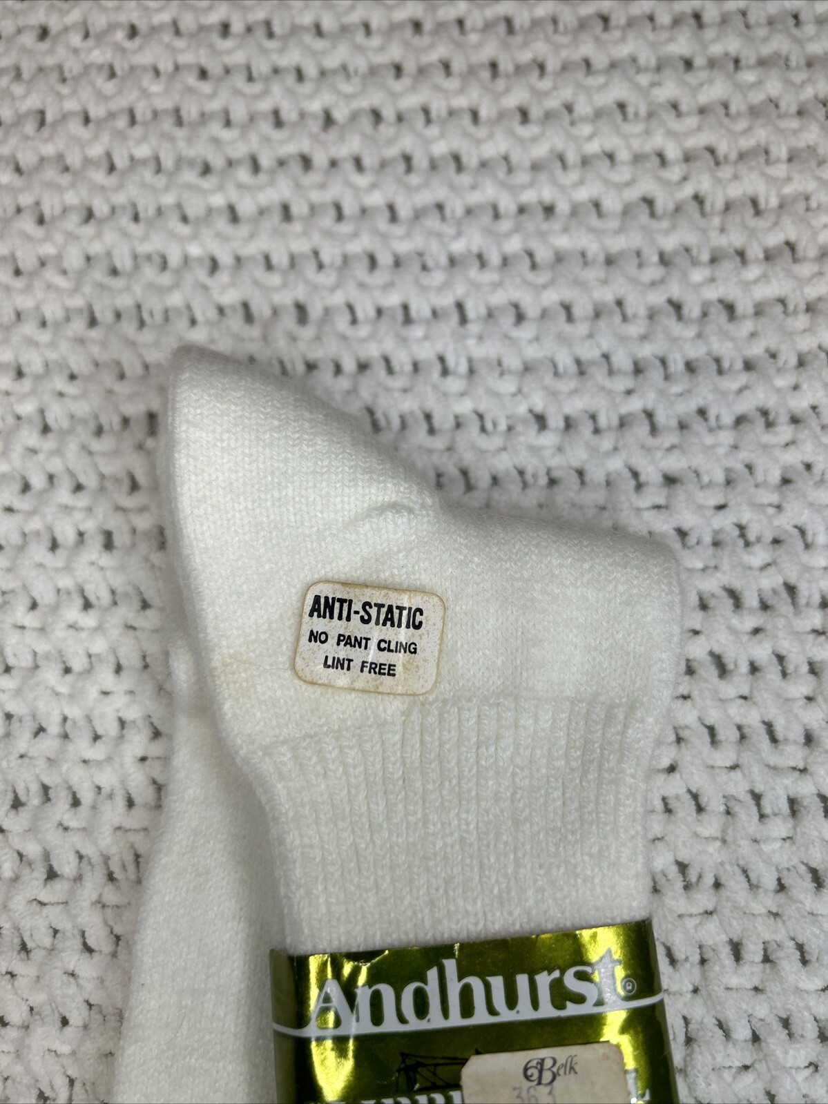 VTG 1970s Socks Andhurst Dress NWT 13-15 White Orlon Acrylic USA NOS Anti-Static