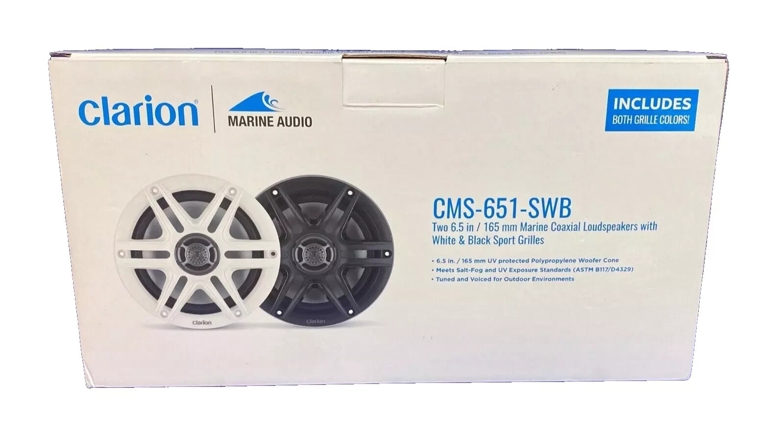Clarion CMS-651-SWB 6.5-inch Coaxial Marine Speakers 30W RMS Pair Black