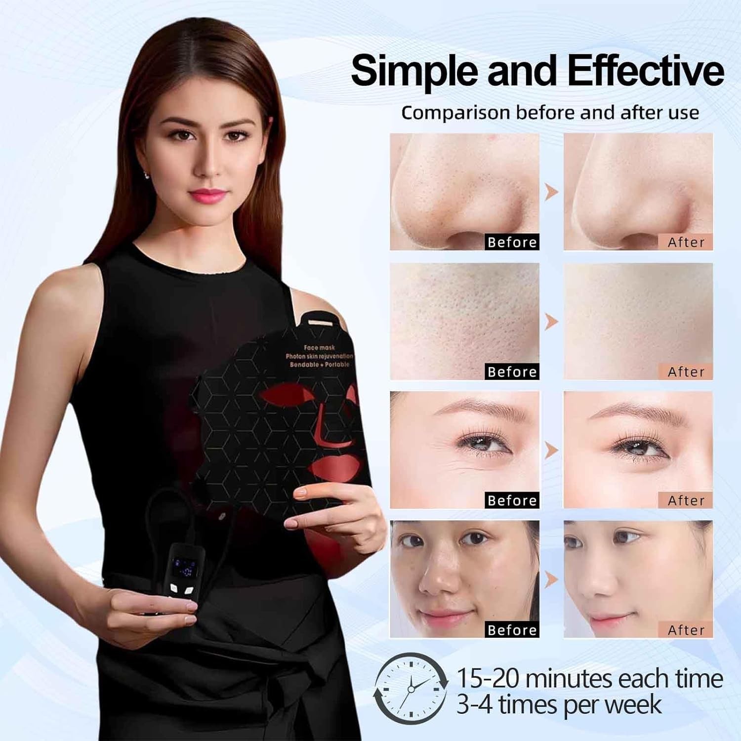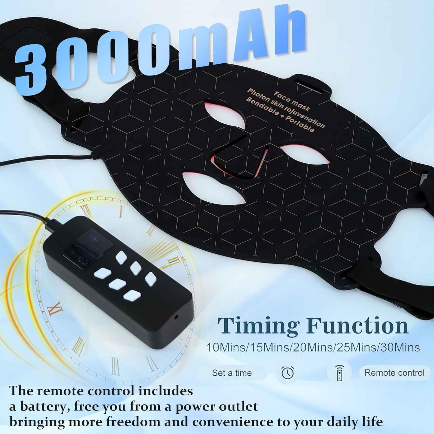Red Light Therapy for Face Mask NIR Infrared Face Masks, Blue Light, 3000mAh