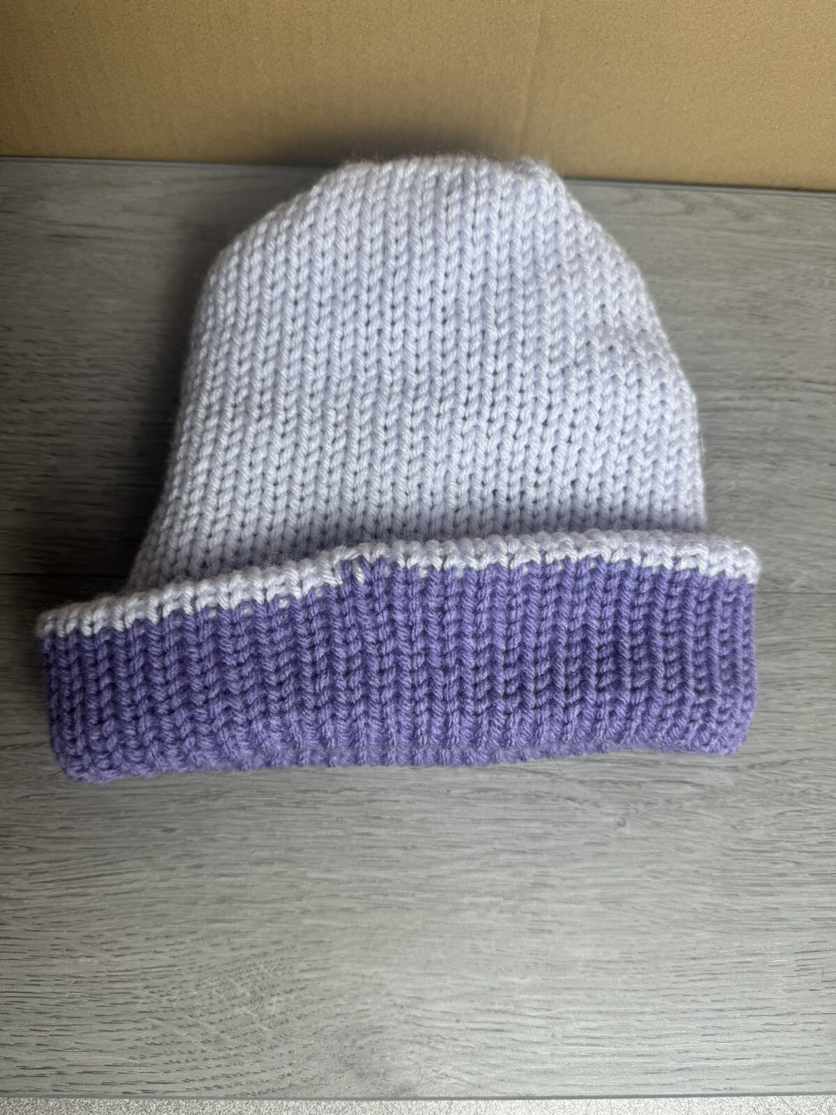 Kids Beanie Toboggan Crochet hand made purple white snow Hat soft adult