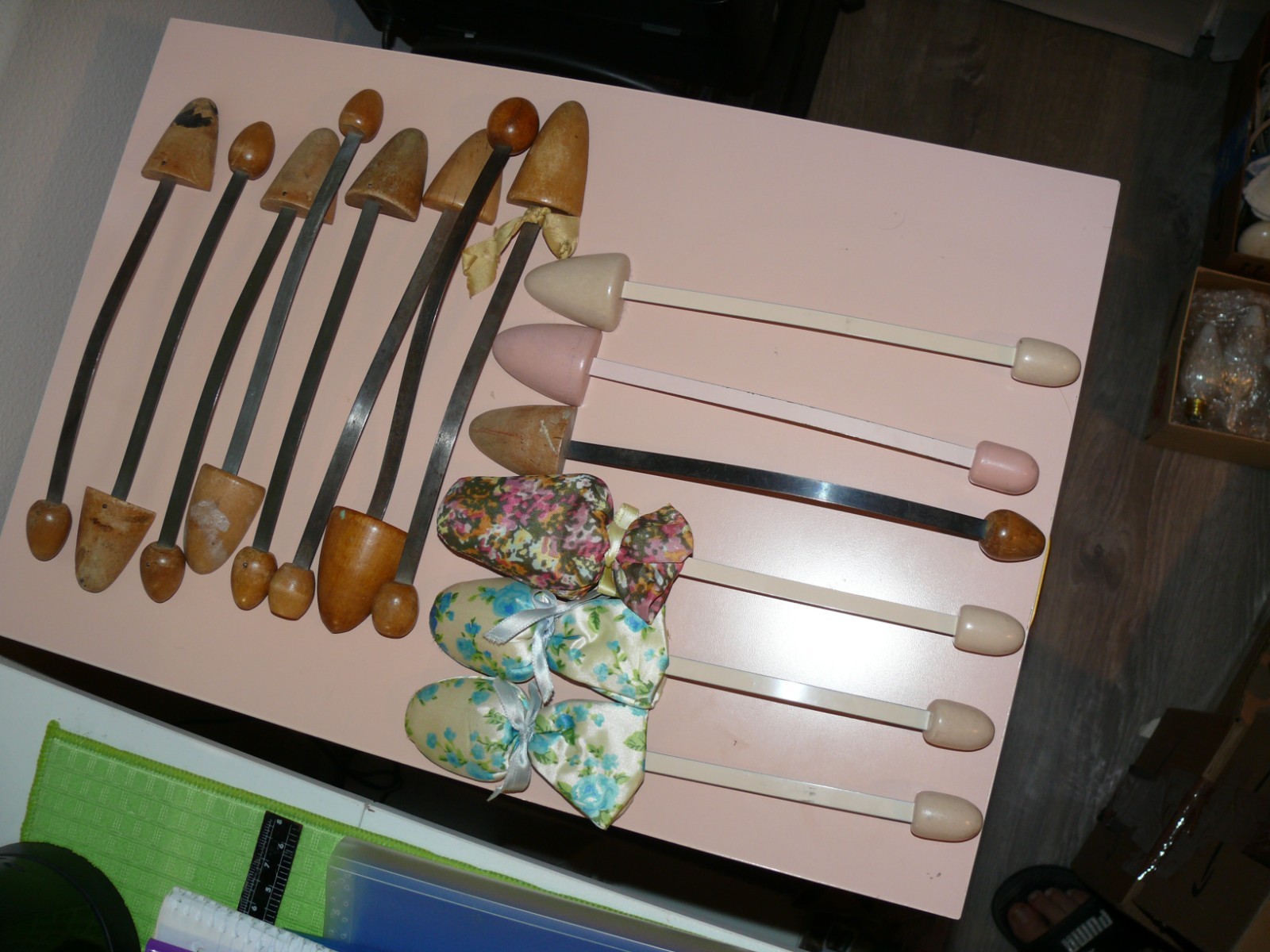 7 Pair Vintage Ladies Shoe Trees Stretchers Shapers Blue Pink Wood Metal 11