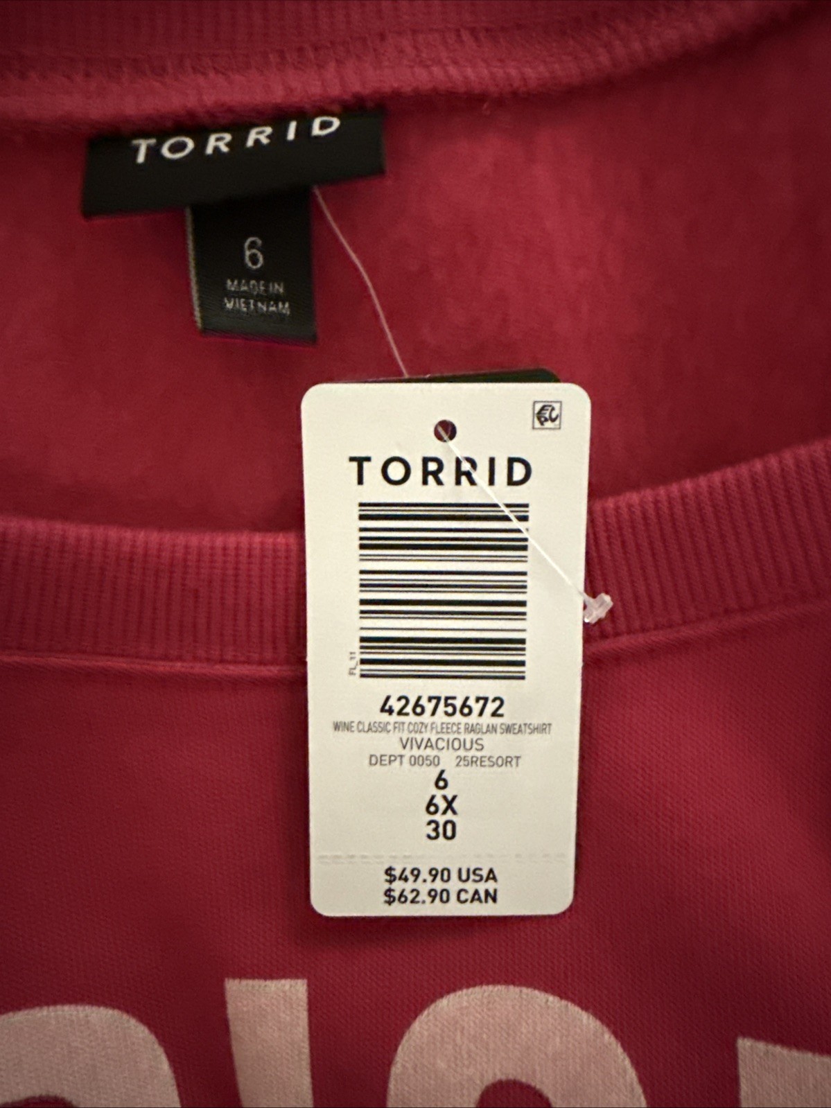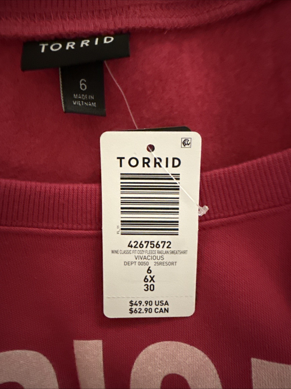 TORRID SWEATSHIRT LONG SLEEVE FLEECE SWEATER 6 6X 6XL 30 NEW