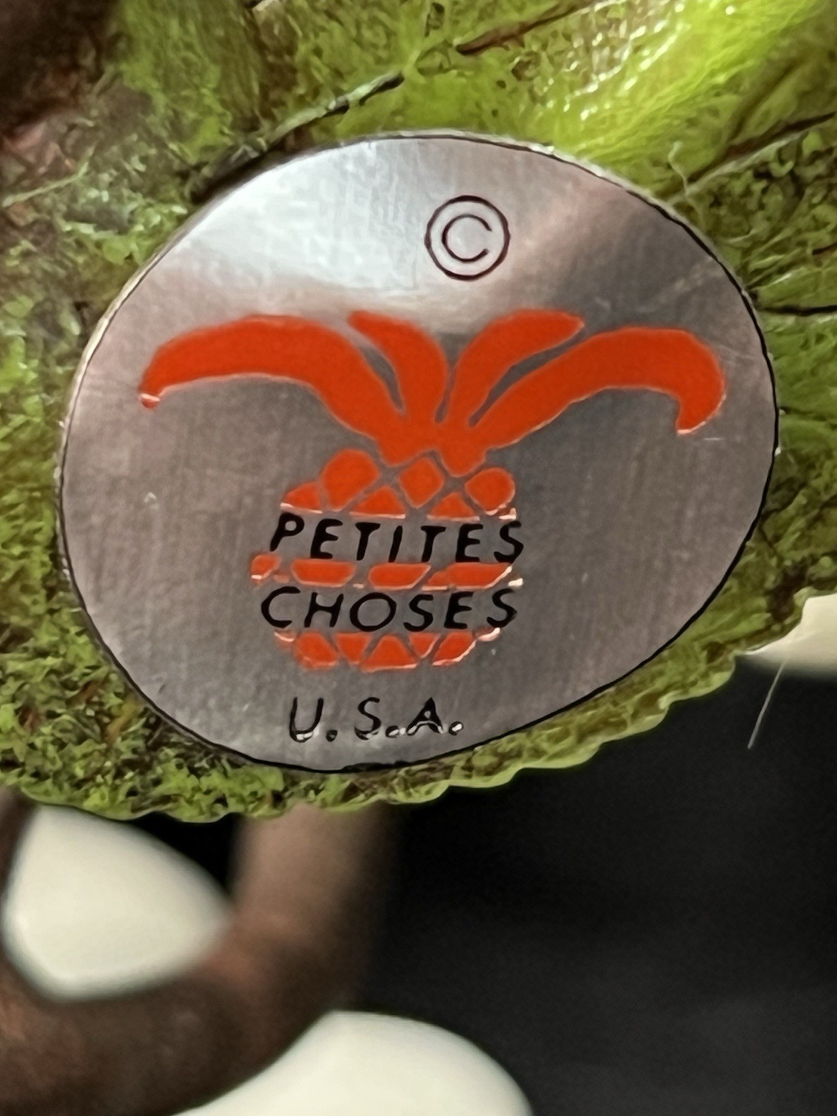 VTG Petite Choses Ceramic Bird on Metal Nest with Eggs, Leaves and Flowers