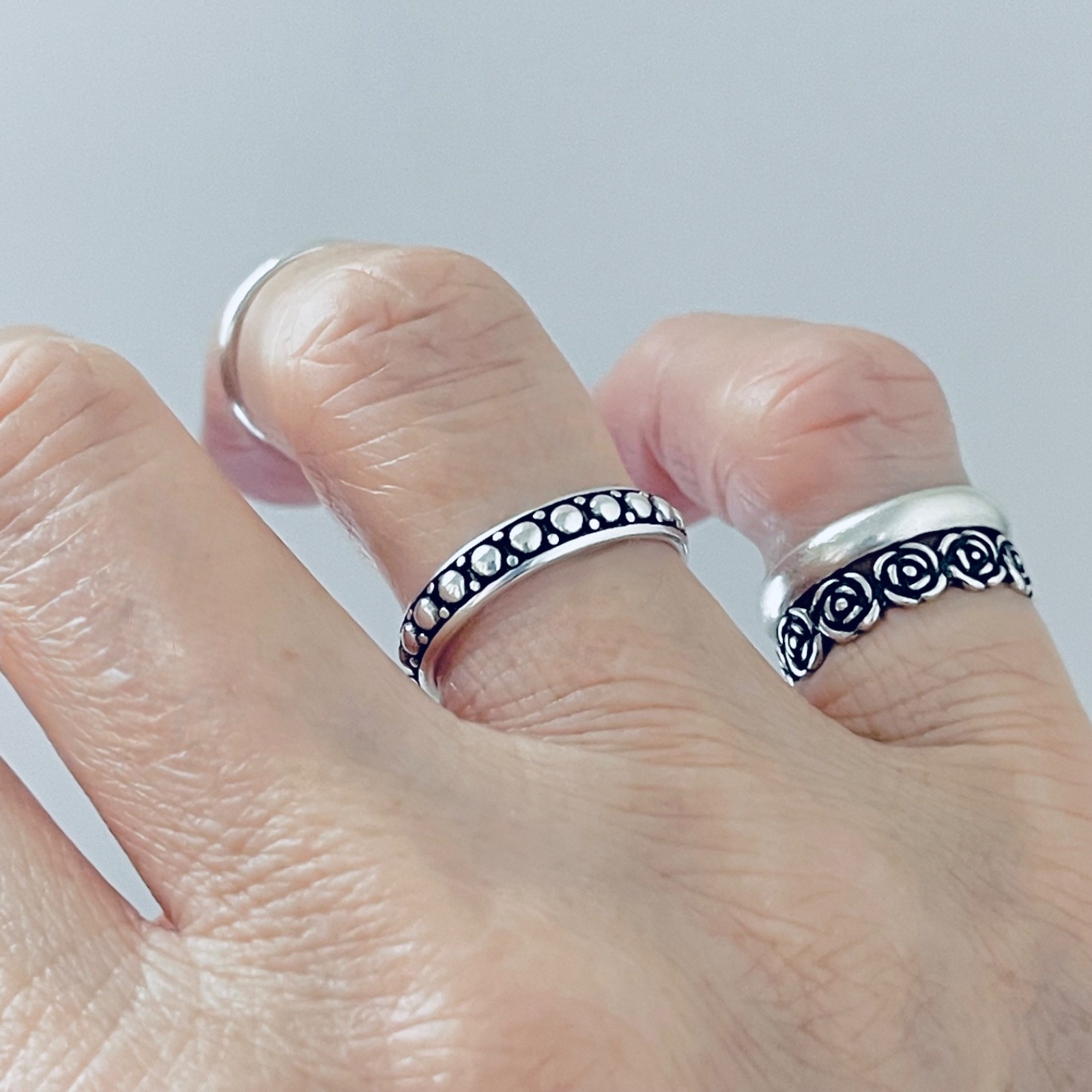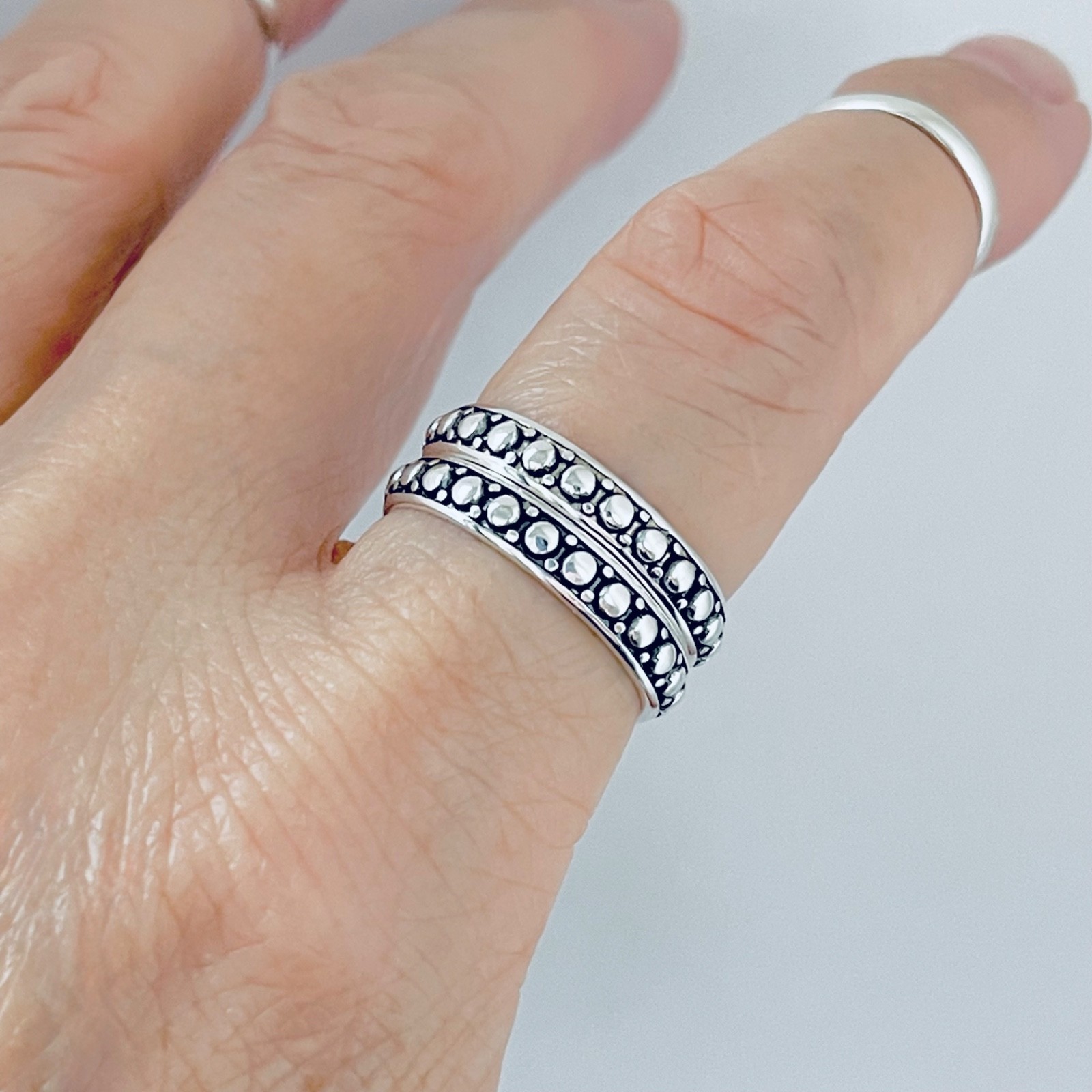 как выглядит Sterling Silver Beads Inside Band Ring, Silver Rings, Stackable Beads Band, Dots фото