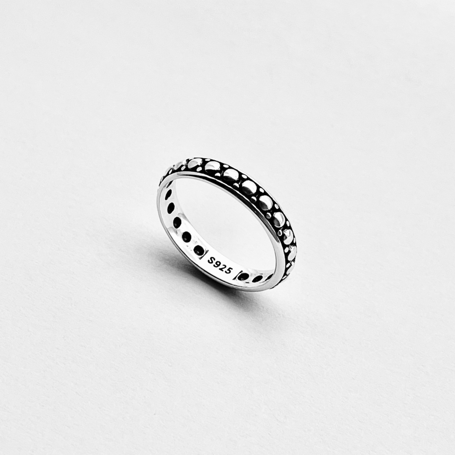 Sterling Silver Beads Inside Band Ring, Silver Rings, Stackable Beads Band, Dots