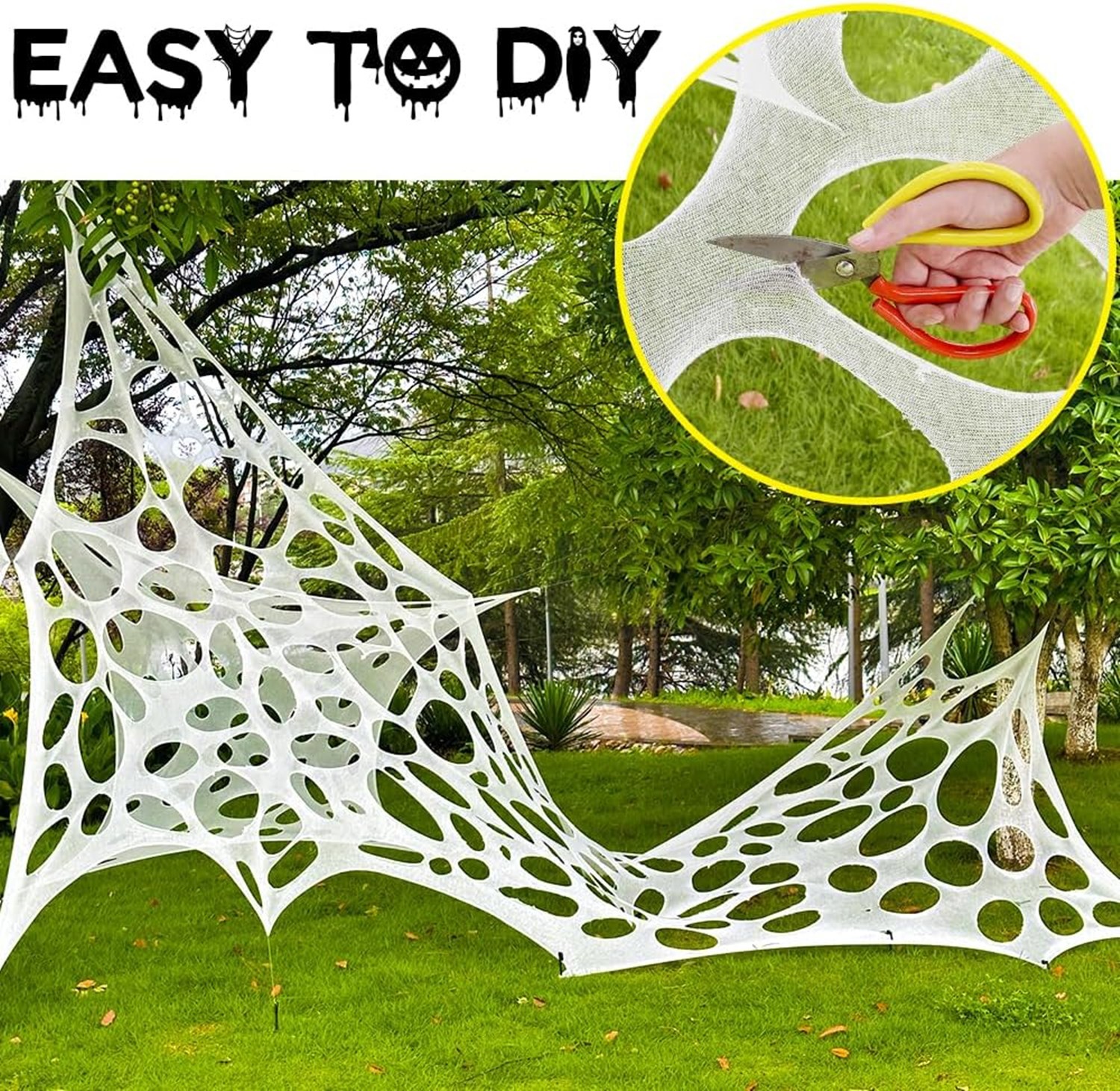49in Giant Spider with 450 Sqft Spider Webs Halloween Decorations Outdoor Yard