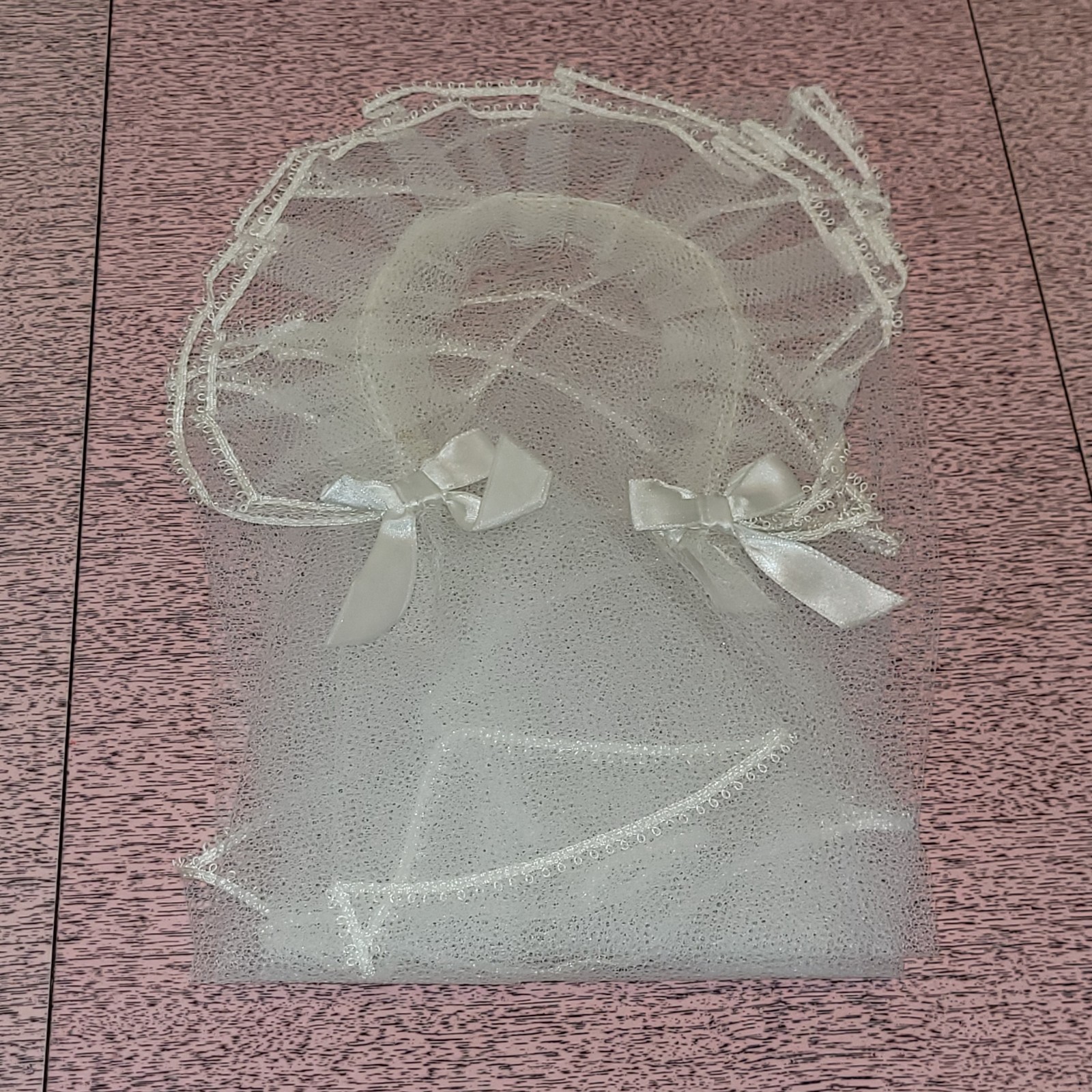 как выглядит NOS Vtg 1950s First Holy Communion Veil in Box Satin Bows Nylon Tulle Set Prop фото