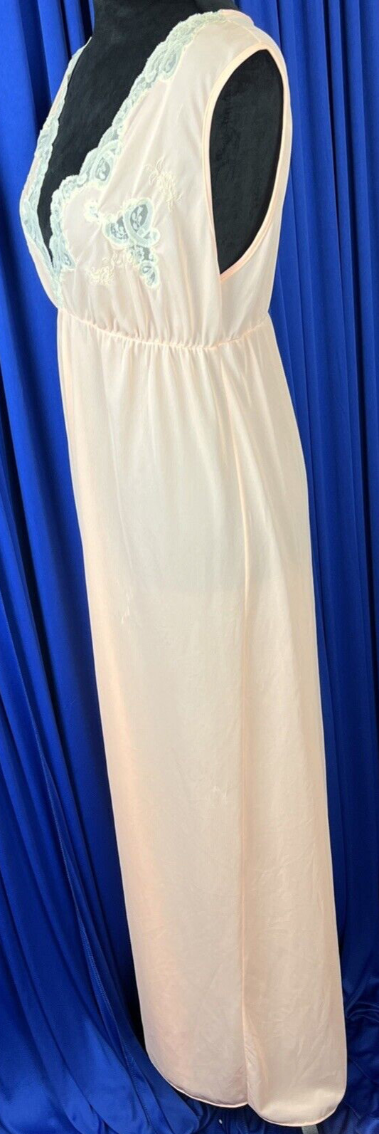 Vintage 60s Semi Sheer Peach Pink Floral Lace Empire Waist Lingerie Nightgown M