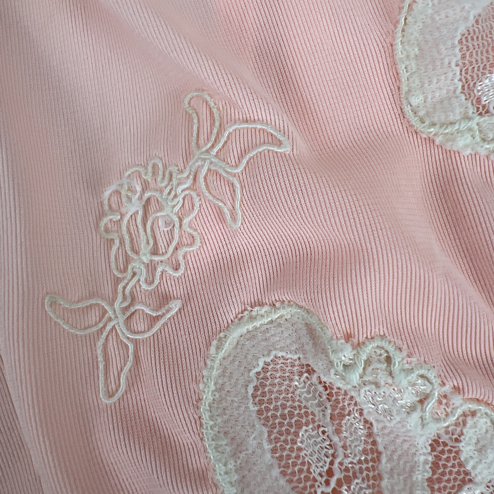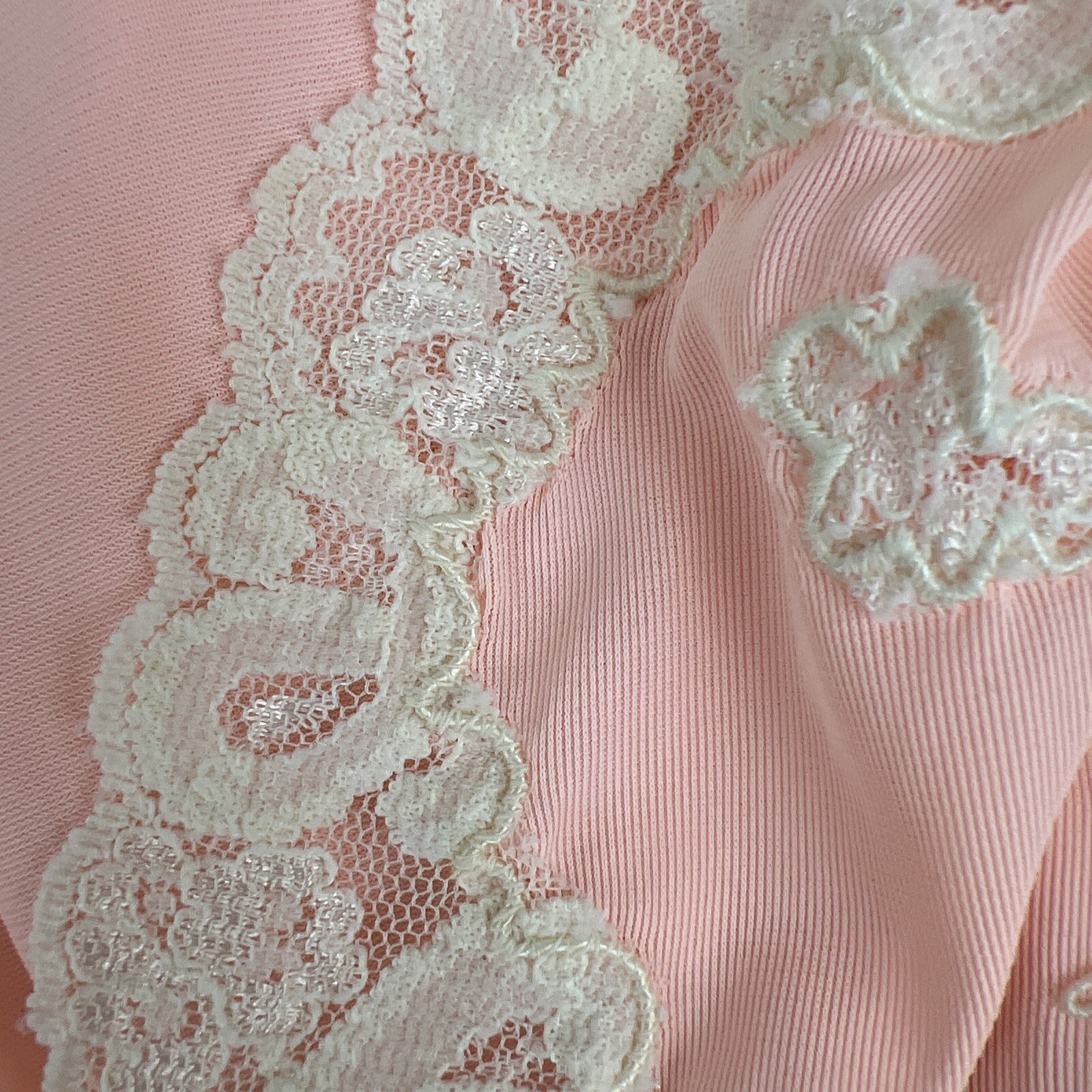 как выглядит Vintage 60s Semi Sheer Peach Pink Floral Lace Empire Waist Lingerie Nightgown M фото