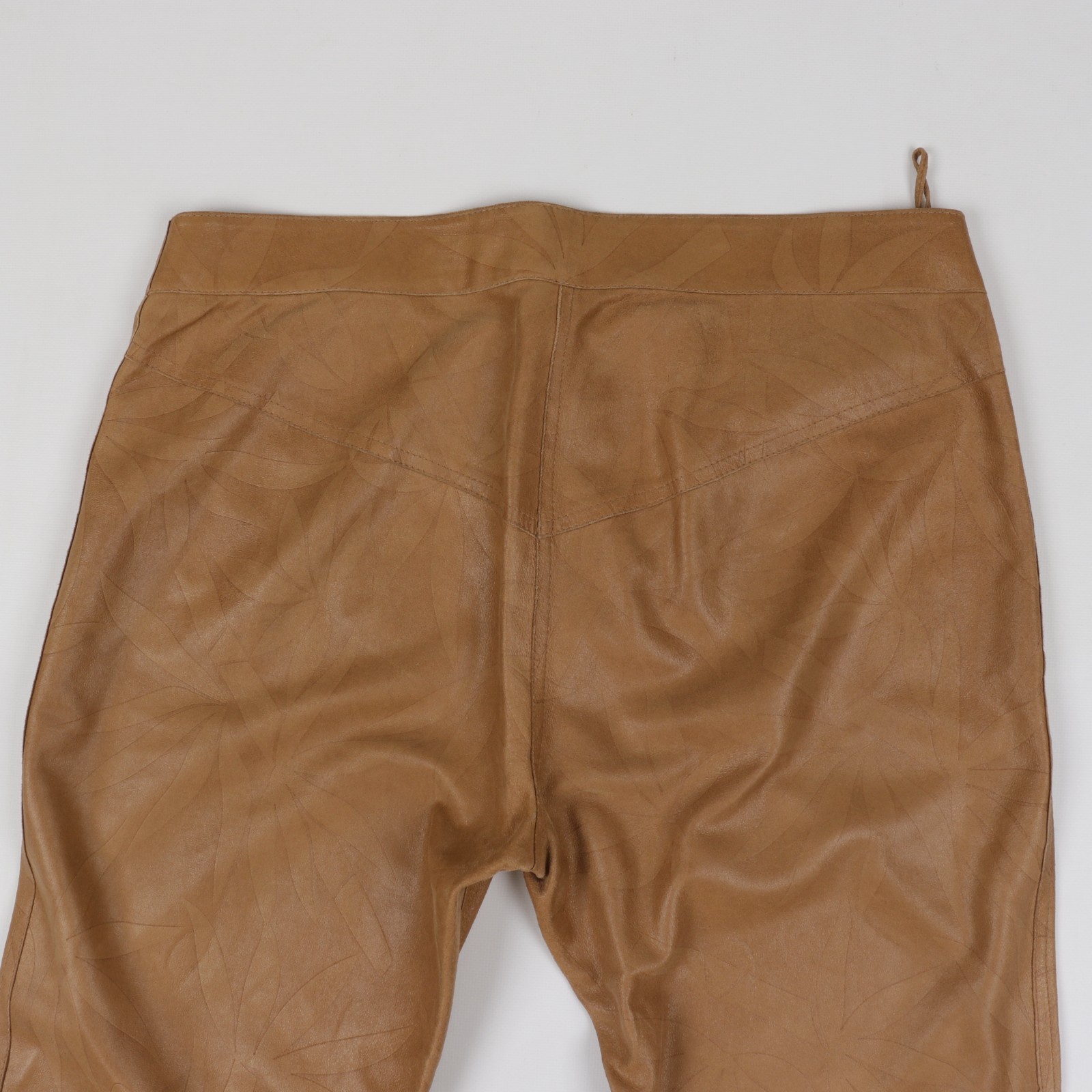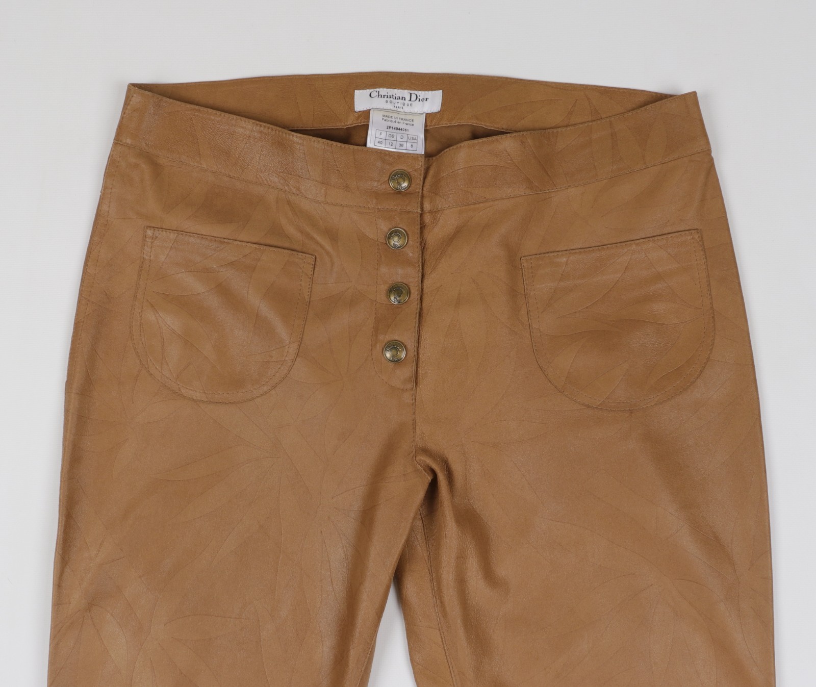 как выглядит Vintage Christian Dior Size FR40 Brown Leather Floral Print Flares Trousers фото
