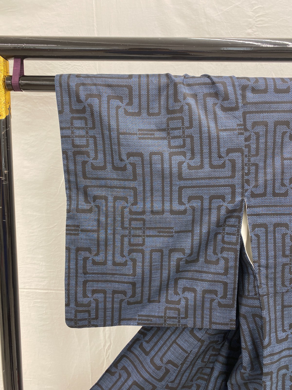 как выглядит Japanese Vintage Kimono Silk Navy Oshima Tumugi Traditional Authentic Length63i фото